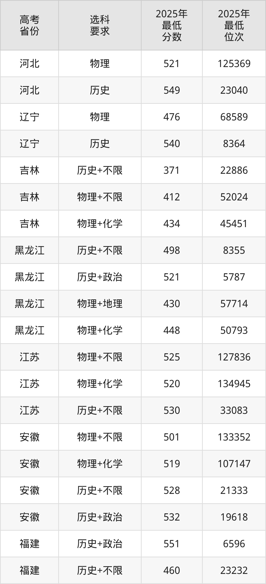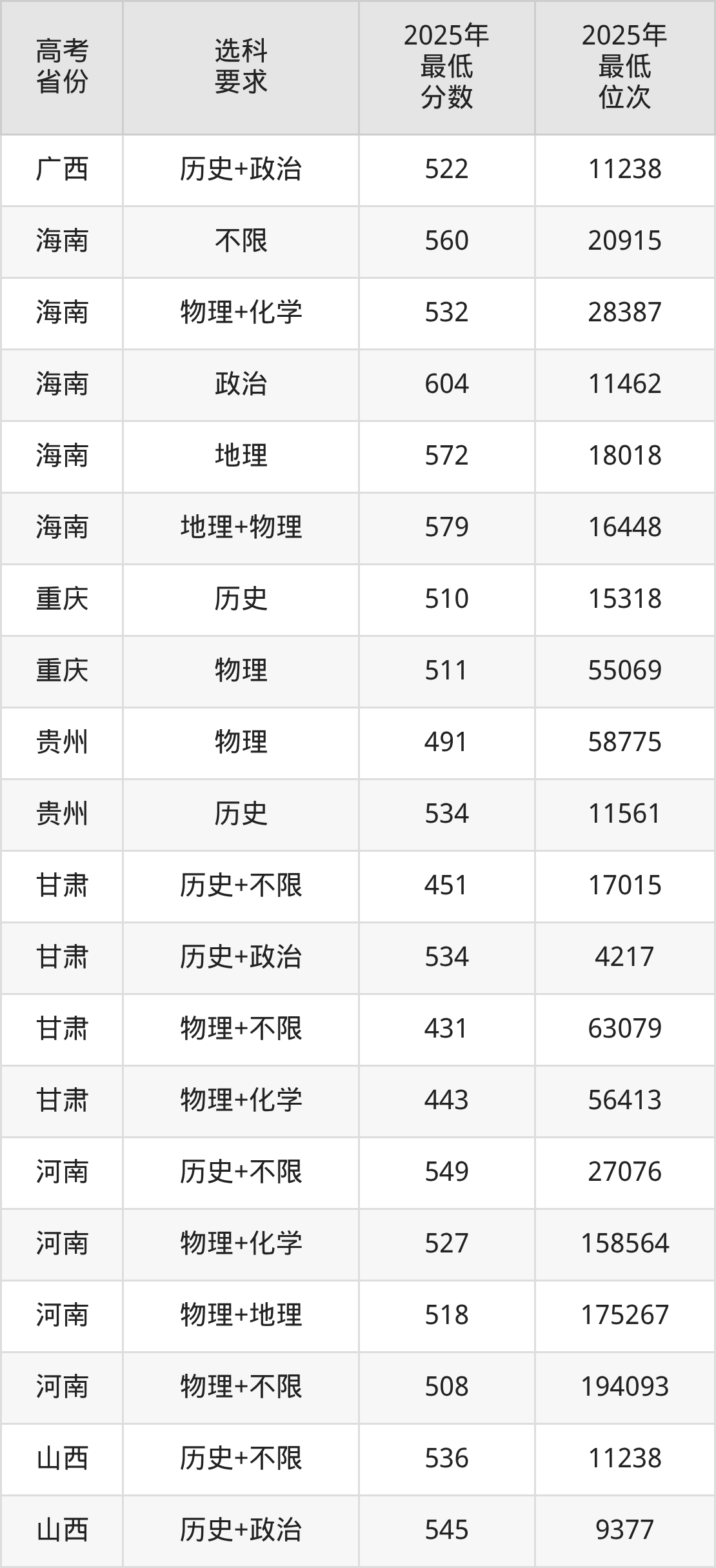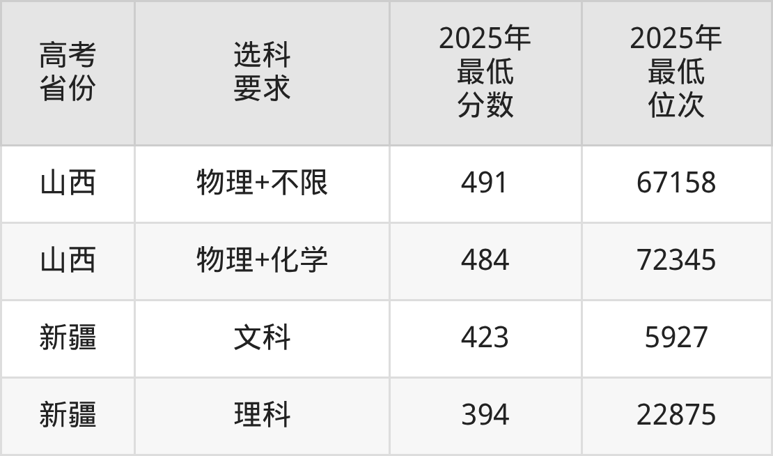 在2025年新疆高考理科招生时,211收分最低的是四川农业大学,最低分是421分、位次是18415位。再看青海师范大学,2025年在新疆理科的最低录取分数线是394分,最低位次是22875位。
