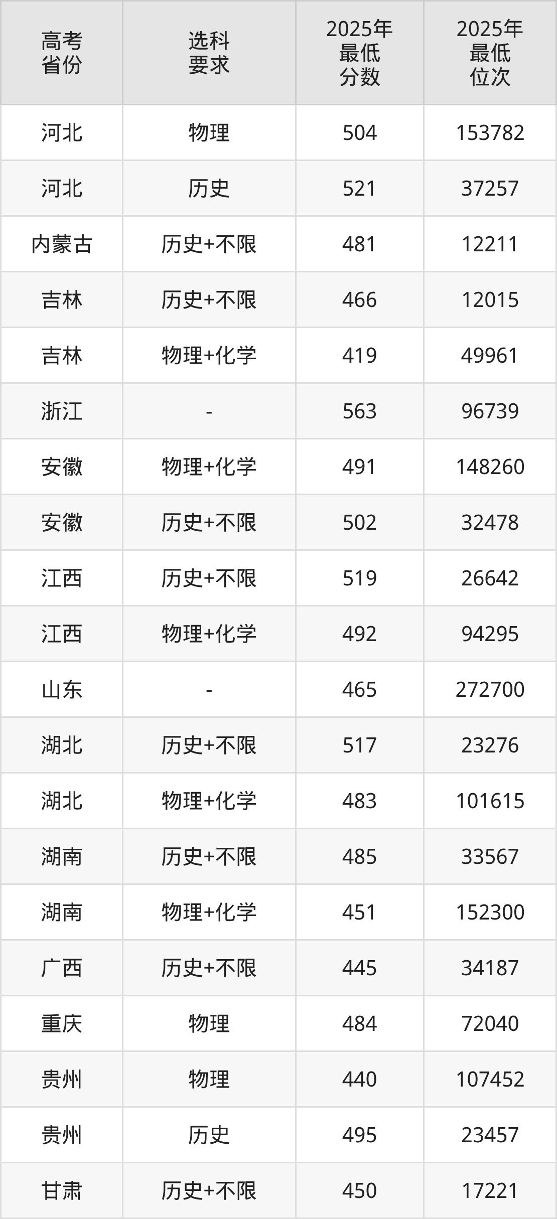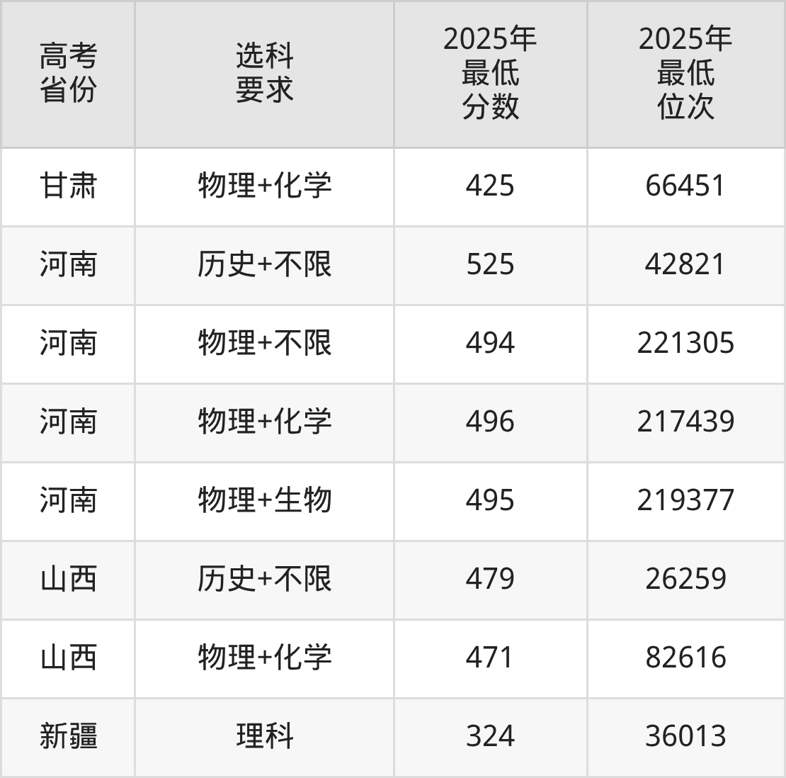 在2025年河南高考物理类招生时,211收分最低的是东北林业大学第201组(中外合作办学组),最低分是434分、位次是335904位。再看河南牧业经济学院,2025年在河南物理类的最低录取分数线是494分,最低位次是221305位。