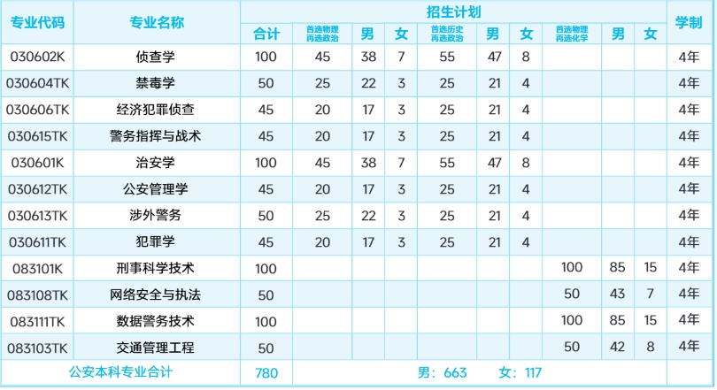 2025公安专业招生780人、普通专业2820人、专科专业500人。