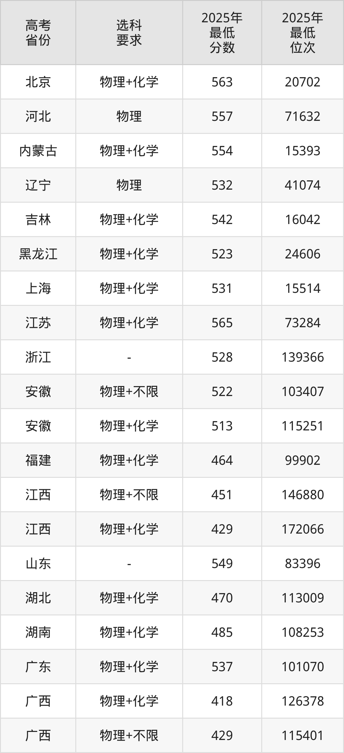 在2025年辽宁高考物理类招生时,211收分最低的是西藏大学,最低分是460分、位次是76739位。再看沈阳药科大学,2025年在辽宁物理类的最低录取分数线是532分,最低位次是41074位。