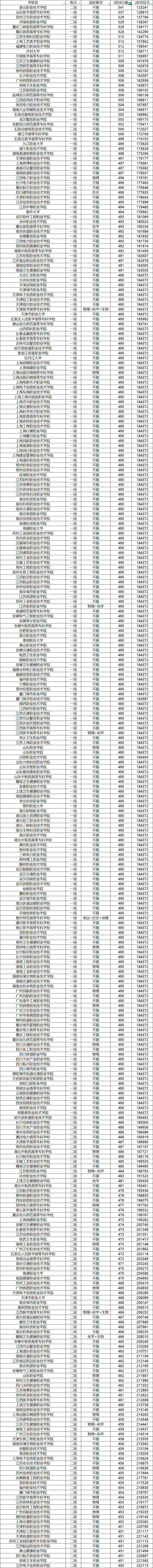 第一梯队(530-540分):省外优质医药专科受追捧山东医学高等专科学校以537分的高分领跑省外专科,苏州卫生职业技术学院(529分)、重庆三峡医药高等专科学校(529分)、重庆医药高等专科学校(526分)、天津医学高等专科学校(511分)、江苏卫生健康职业学院(509分)、江苏医药职业学院(506分)等医药类院校紧随其后。这些院校凭借医学类专业的超高就业质量,吸引了大量高分考生,分数远超一段线。