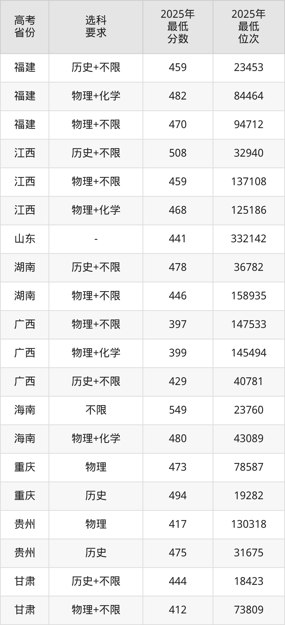 在2025年河南高考物理类招生时,公办本科收分最低的是福建商学院第801组(预科组),最低分是423分、位次是355229位。再看郑州商学院,2025年在河南物理类的最低录取分数线是427分,最低位次是348358位。