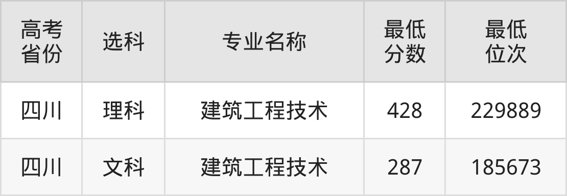 | 四川 | 文科 | 工程造价 | 289 | 185071 |