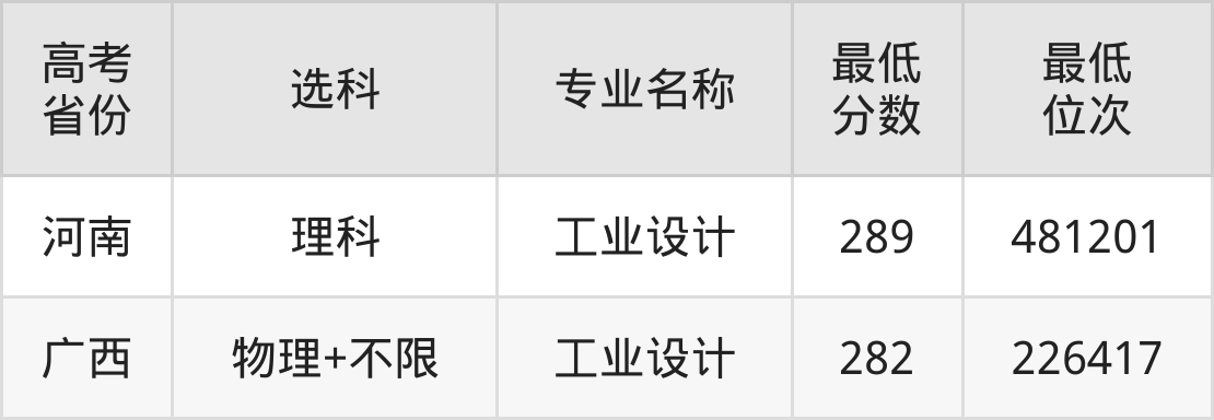 泉州工艺美术职业学院工业设计专业2024年在河南的最低分是289分、在广西的最低分是282分。