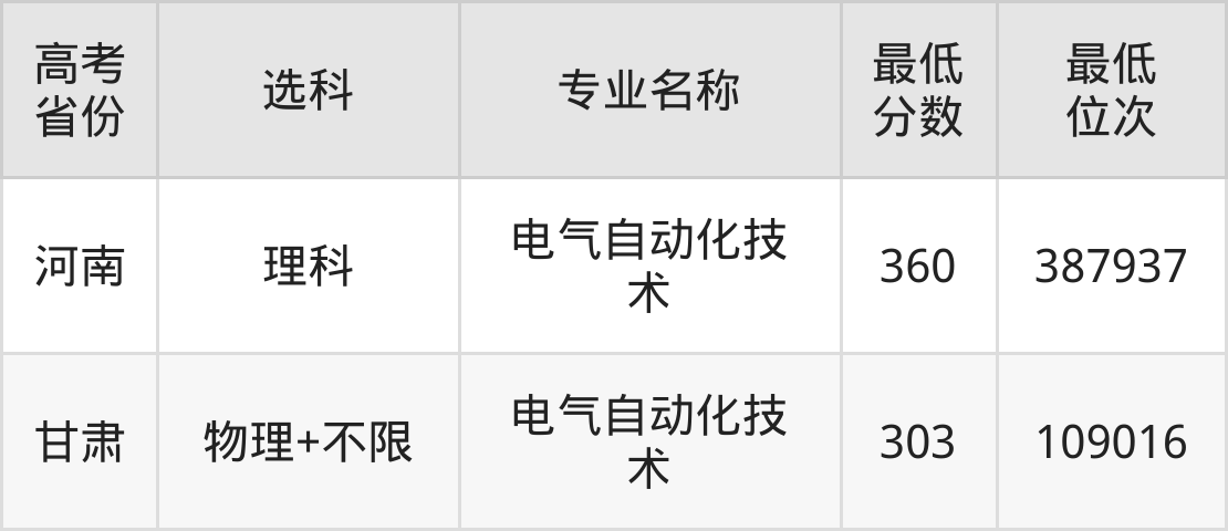 中山火炬职业技术学院电气自动化技术专业2024年在河南的最低分是360分、在甘肃的最低分是303分。