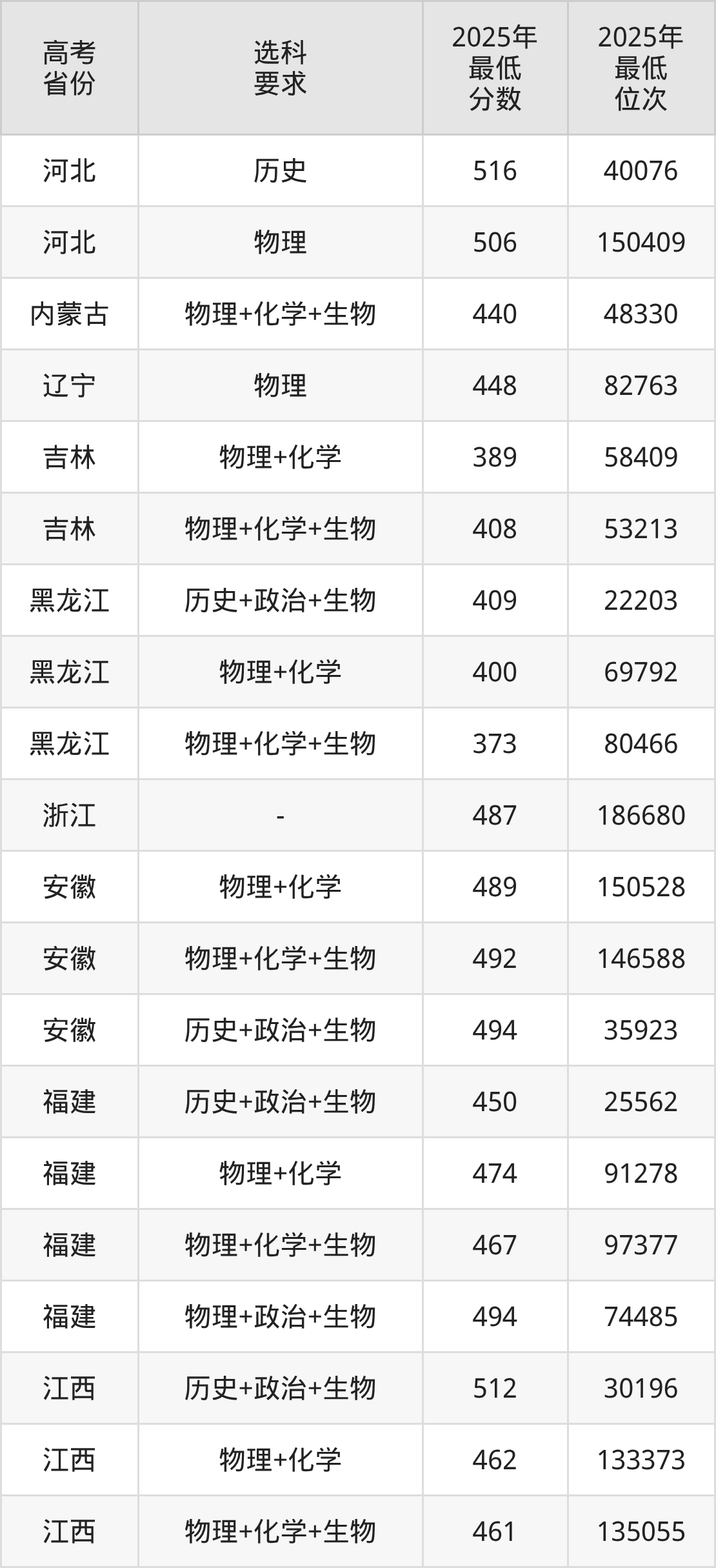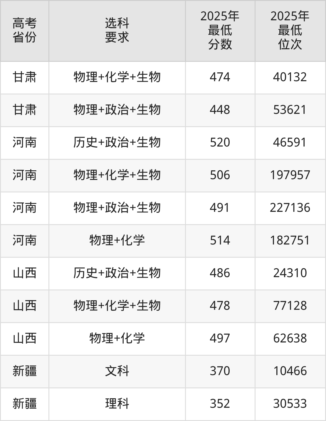 在2025年新疆高考理科招生时,211收分最低的是四川农业大学,最低分是421分、位次是18415位。再看新疆第二医学院,2025年在新疆理科的最低录取分数线是352分,最低位次是30533位。