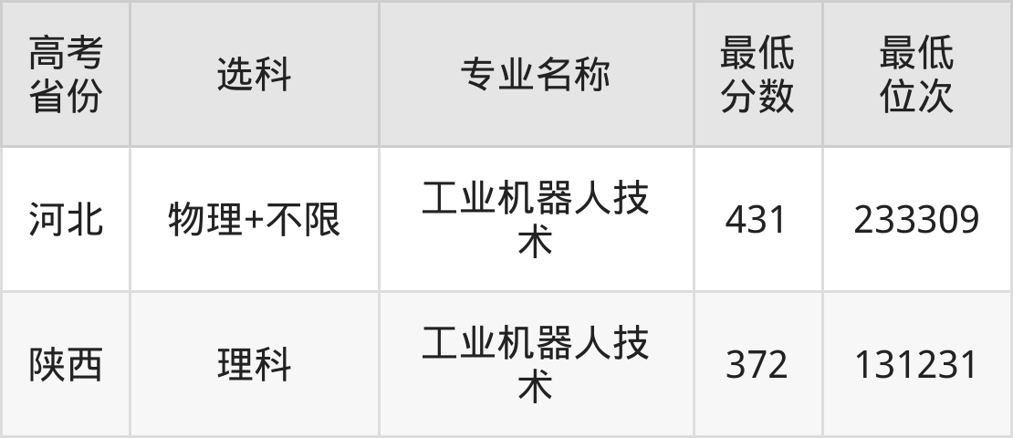 | 陕西 | 理科 | 机电一体化技术 | 372 | 131452 |