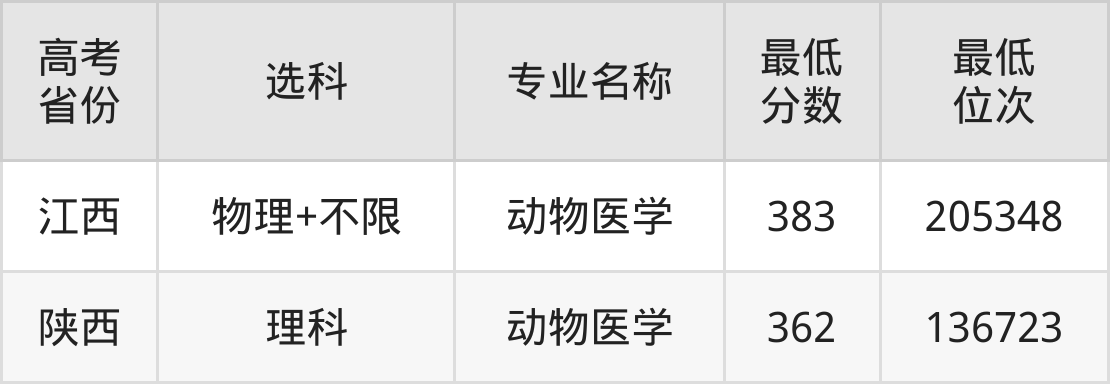 | 陕西 | 理科 | 畜牧兽医 | 363 | 136123 |