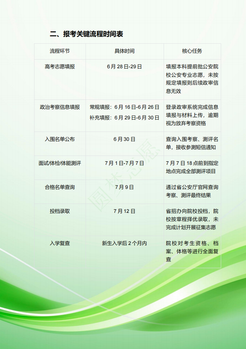 6月28日-29日:填报本科提前批公安院校公安专业志愿,未按规定填报则后续政审信息无效。