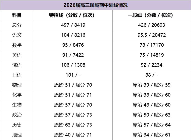 2026届山东高三期中考试作为高考前的重要演练,部分地市已公布划线及排名数据。本文汇总济南、烟台、聊城、德州等地市的分数线与分数段排名,帮助考生清晰定位当前水平,明确冲刺目标。