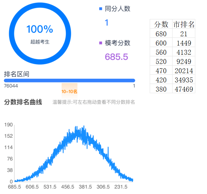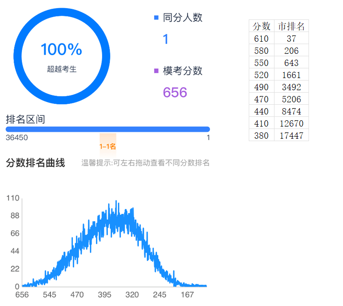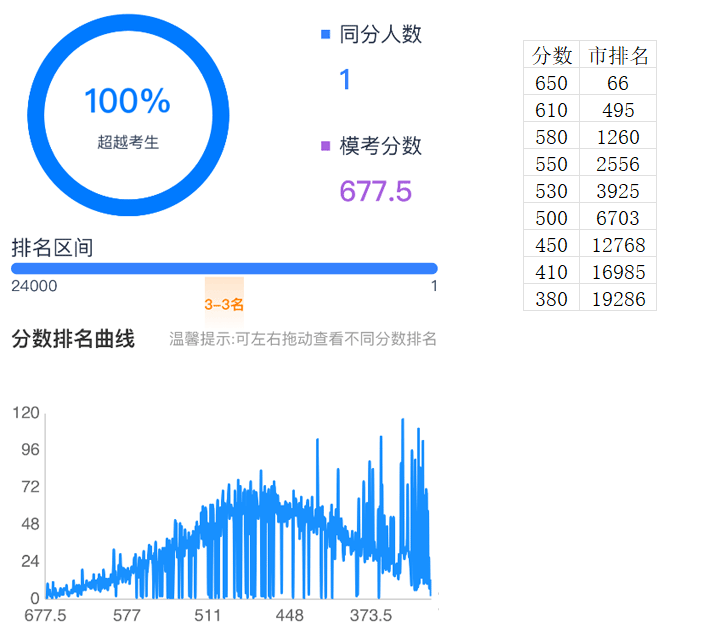 中高分段考生密集,需强化弱科突破;善用排名曲线定位,优化复习重点。