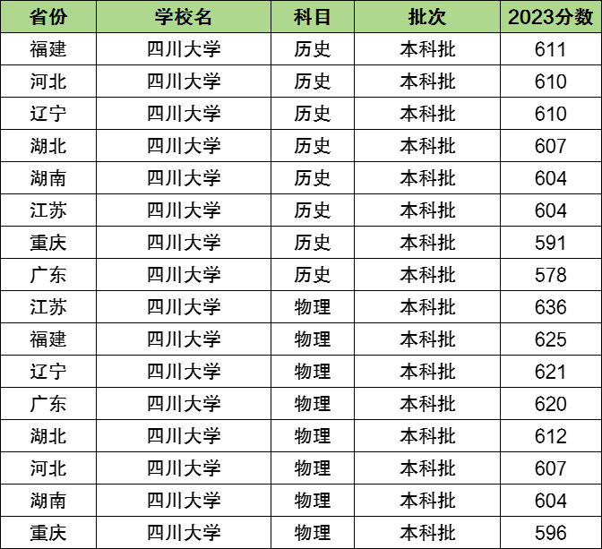 下面让我们来看看四川大学2023年在各省的最低录取分数线,可供2024年考生参考。