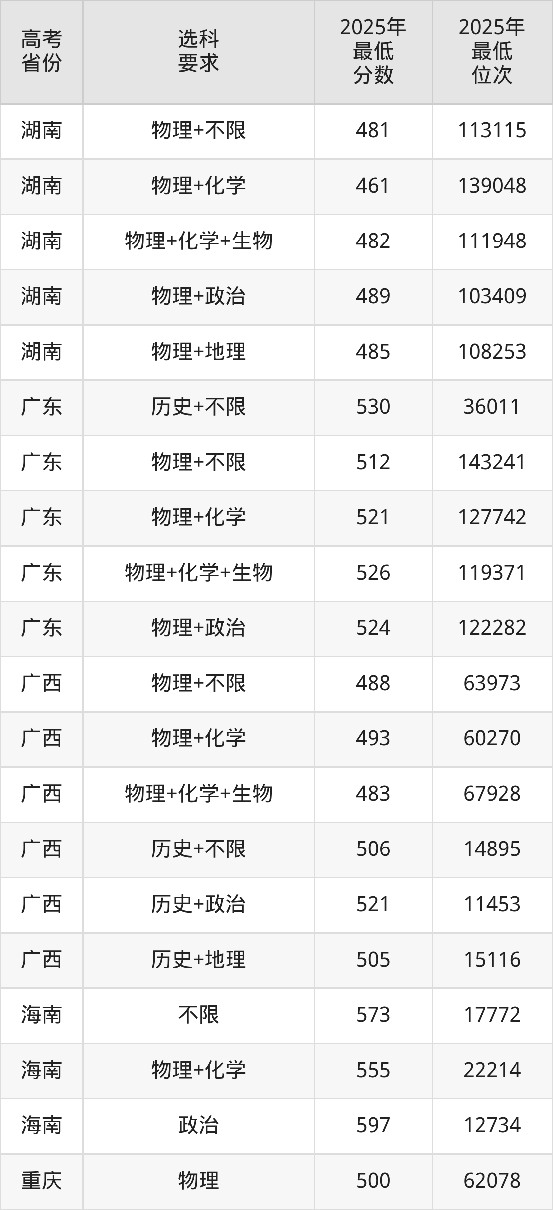 在2025年湖南高考物理类招生时,211收分最低的是海南大学第218组(中外合作办学或国际项目),最低分是462分、位次是137709位。再看长沙学院,2025年在湖南物理类的最低录取分数线是461分,最低位次是139048位。