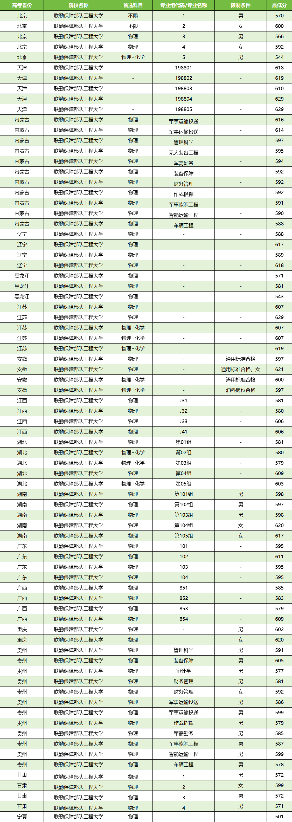 二、联勤保障部队工程大学录取分数线