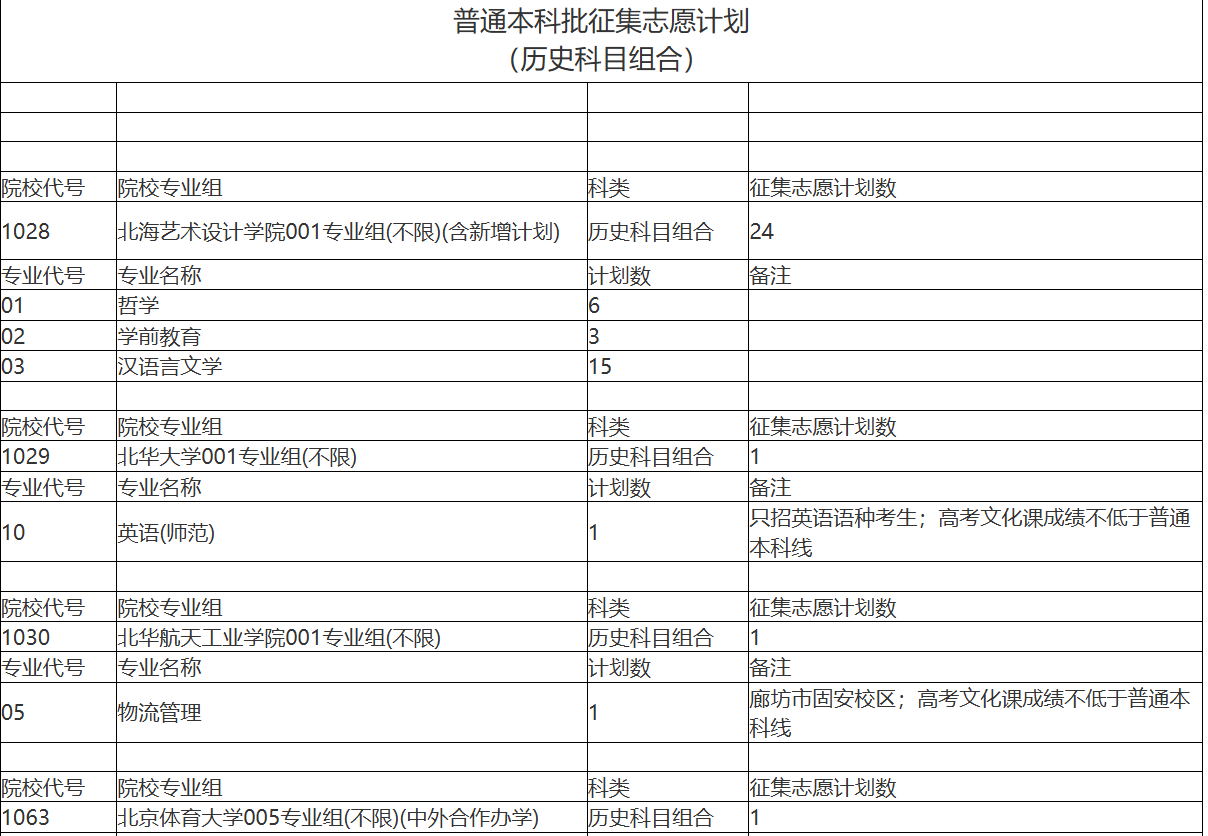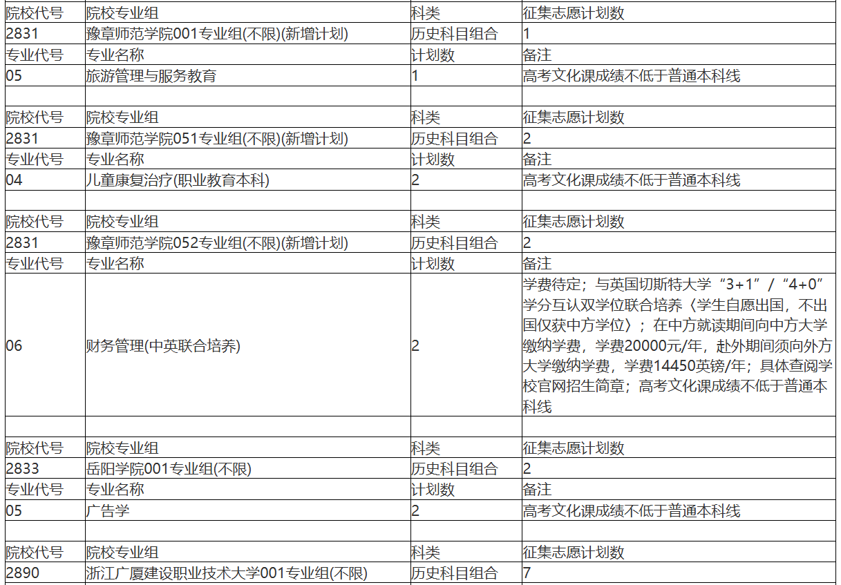 院校名单以录取后缺额计划为准,目前提前批缺额已公布,本科批、专科批名单待后续更新: