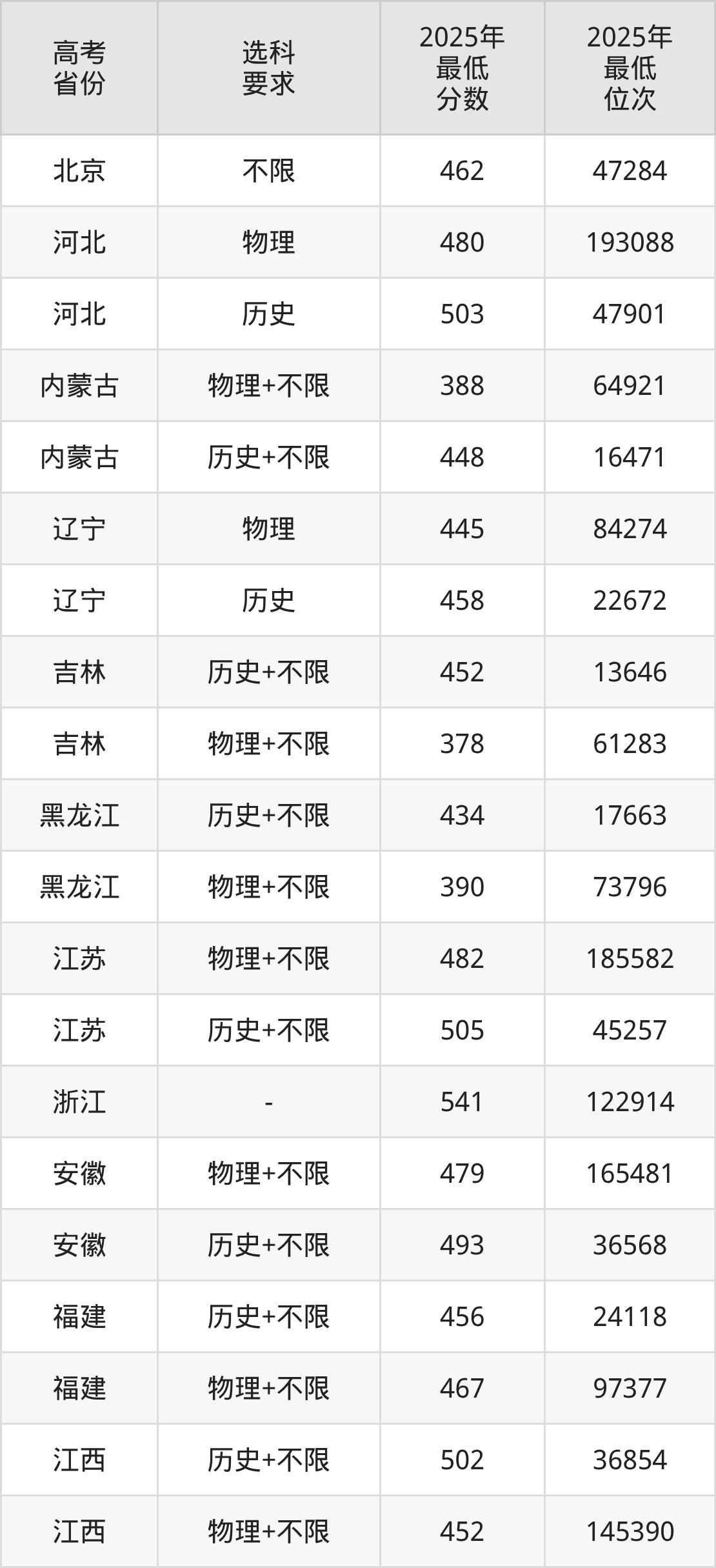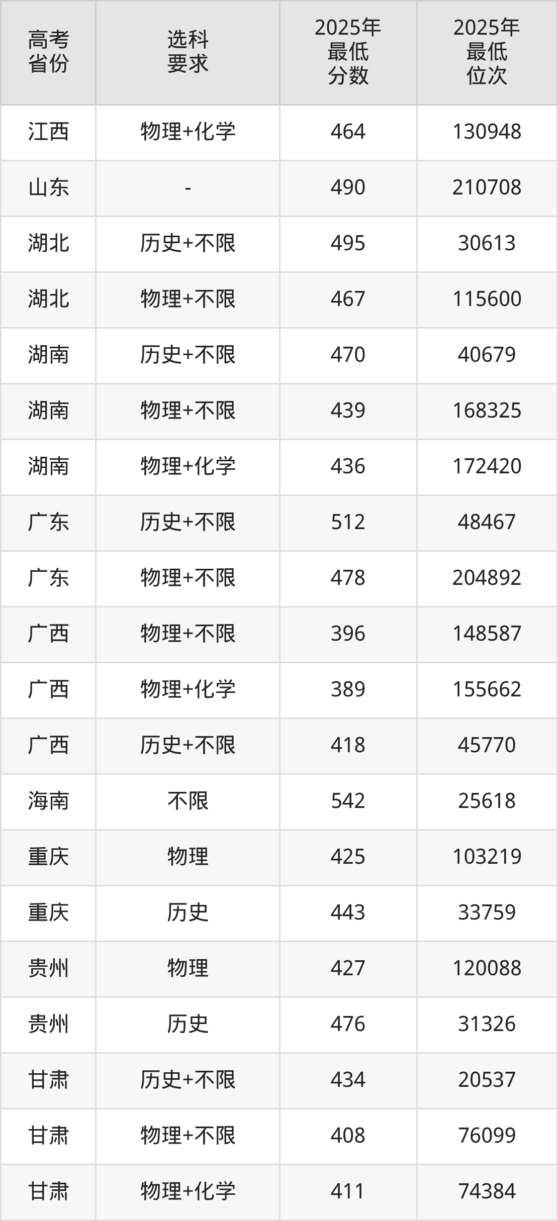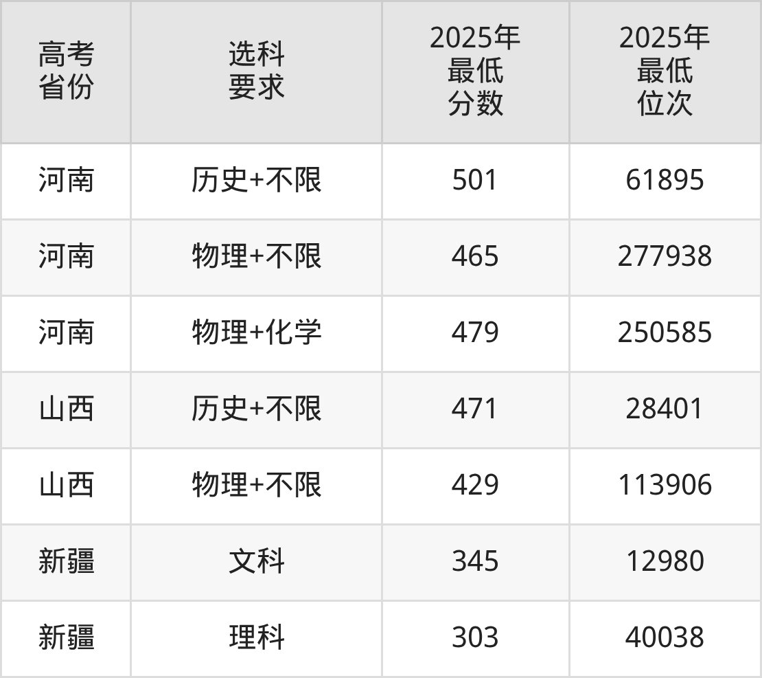 在2025年重庆高考物理类招生时,公办本科收分最低的是乌鲁木齐职业大学,最低分是180分、位次是139478位。再看重庆外语外事学院,2025年在重庆物理类的最低录取分数线是425分,最低位次是103219位。