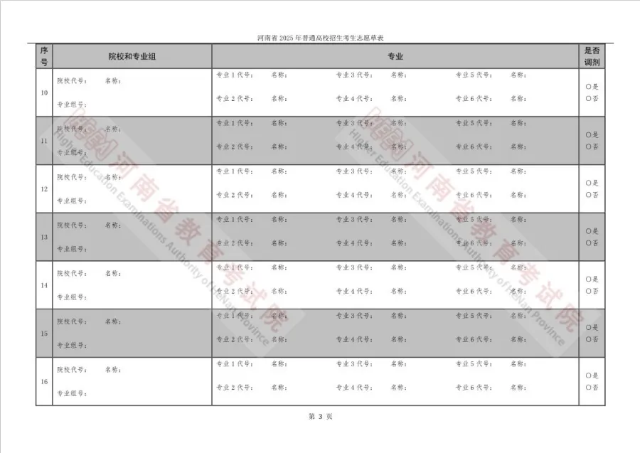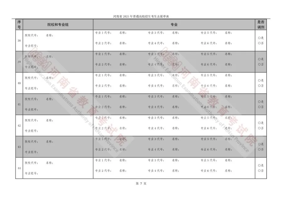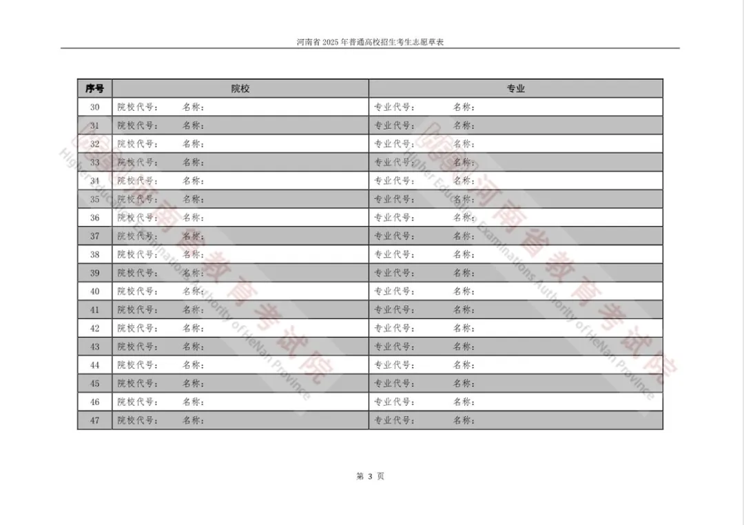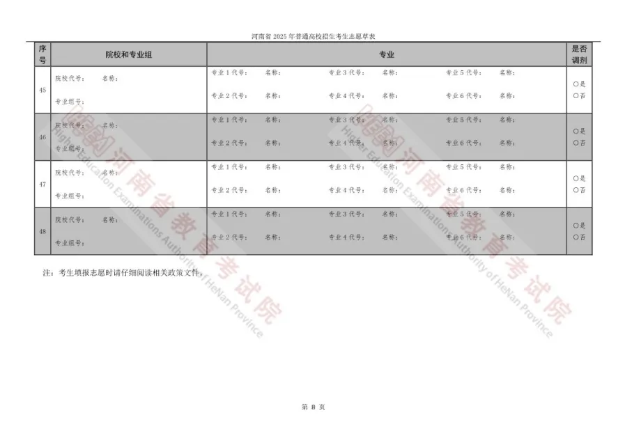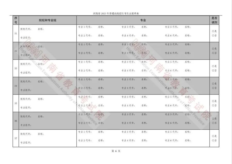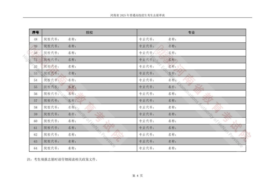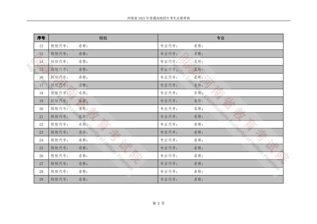 河南省2026年高考志愿样表采用“院校专业组”模式,包含以下关键字段: