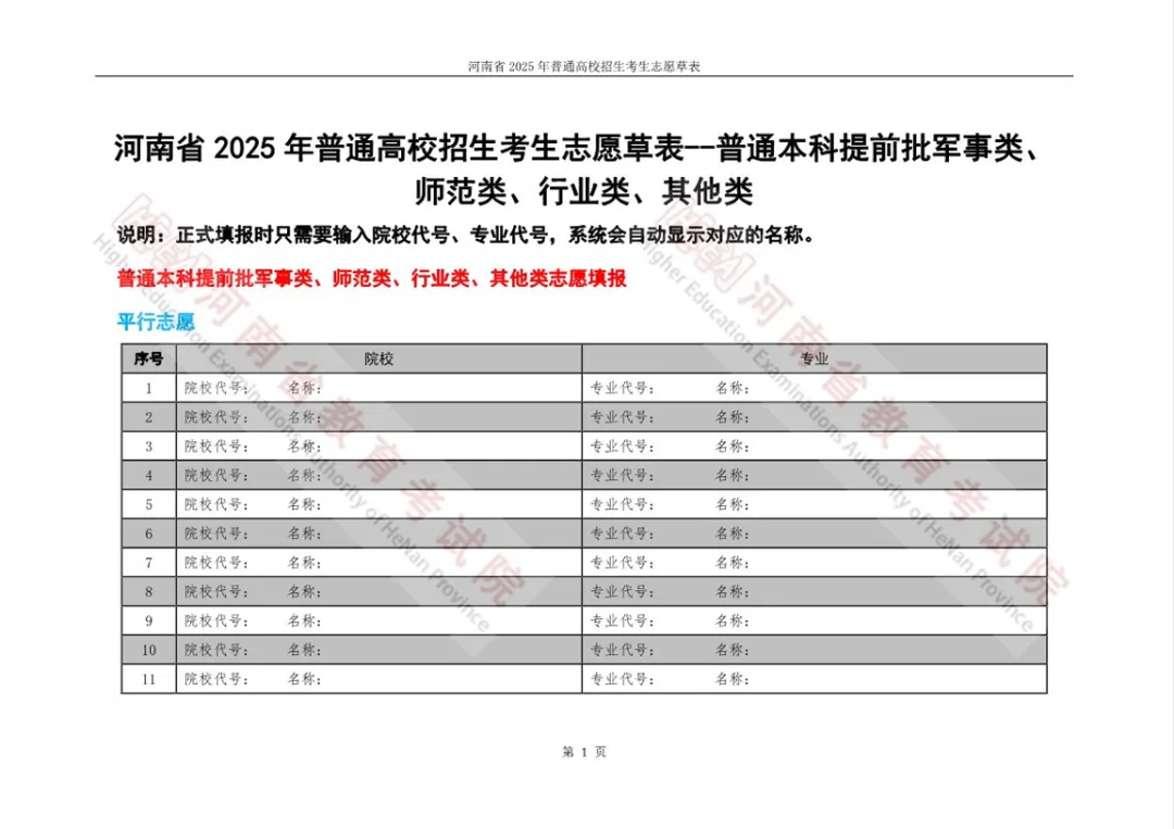 下载路径:登录考生服务平台→点击“网上志愿填报志愿草表”→选择对应批次下载。