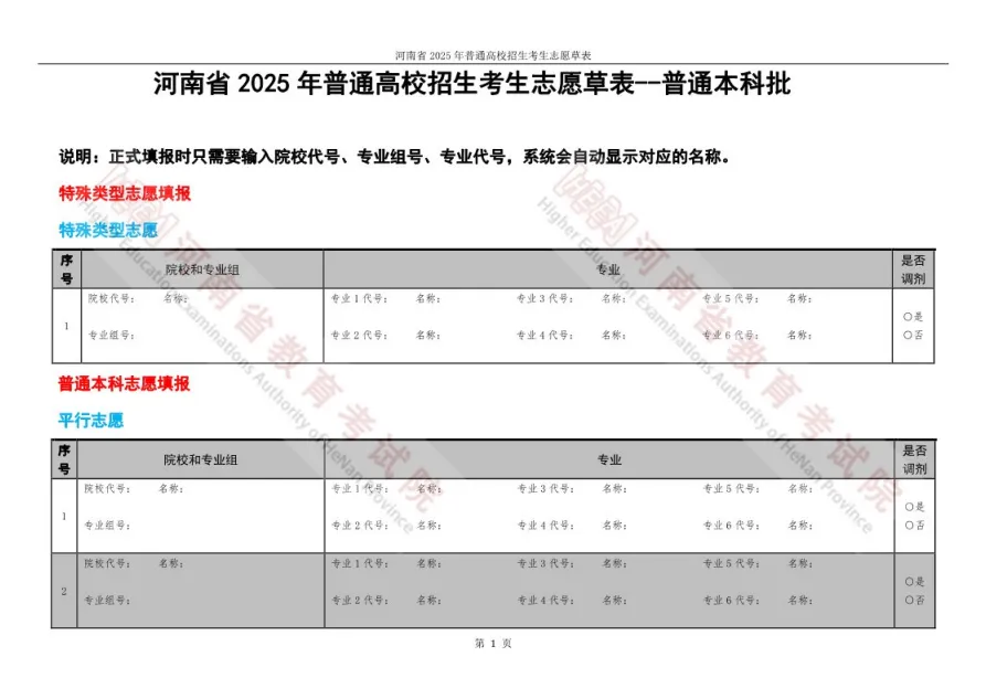 可提前参考2025年高考志愿填报表,进行模拟志愿填报↓