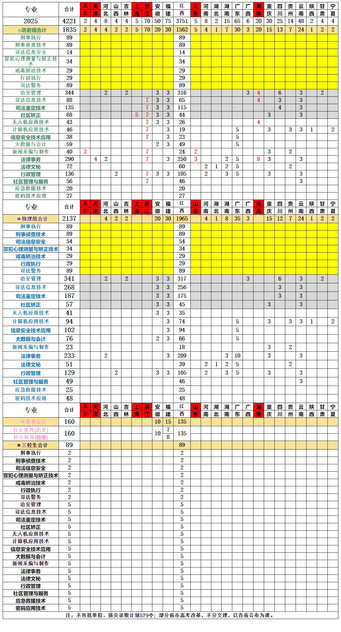 三、江西司法警官职业学院2025年招生计划