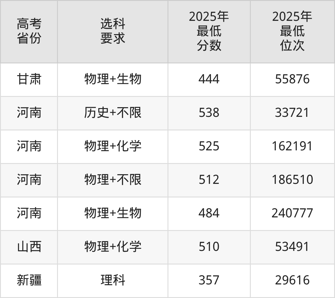 在2025年辽宁高考物理类招生时,211收分最低的是西藏大学,最低分是460分、位次是76739位。再看锦州医科大学,2025年在辽宁物理类的最低录取分数线是450分,最低位次是81785位。
