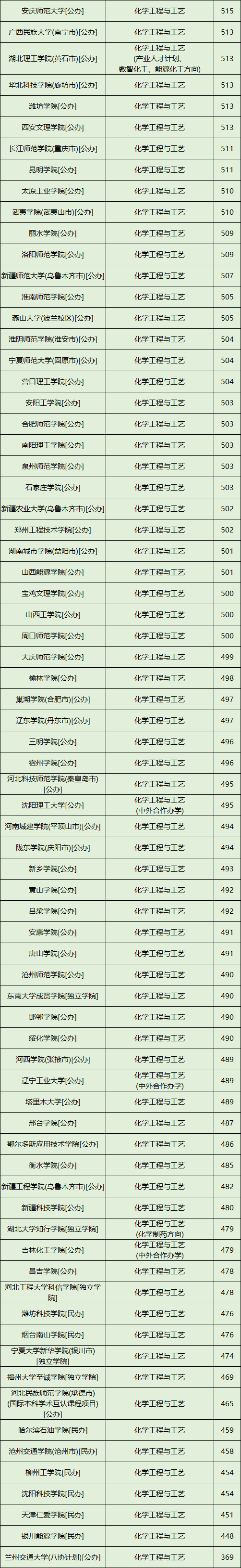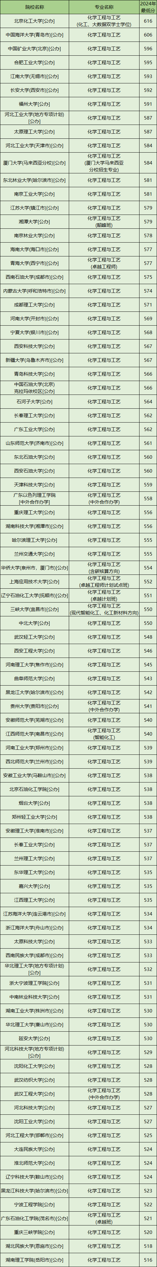 圆梦小编将在本文详细展示:全国各本科大学化学工程与工艺专业2024年的最低录取分数线!