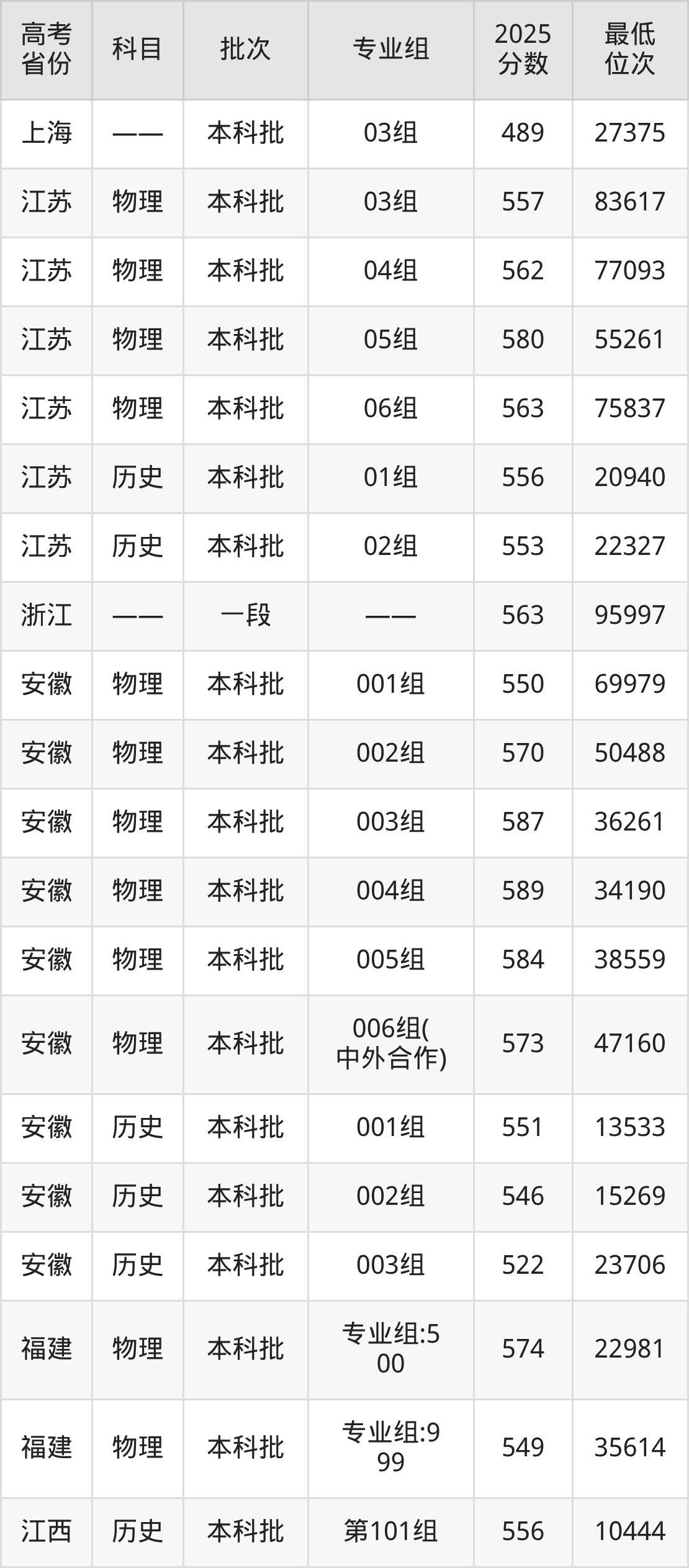 | 学校 代码 | 科目 | 2025年 专业组 | 专业 代码 | 2025年 专业名称 | 收费 标准 |