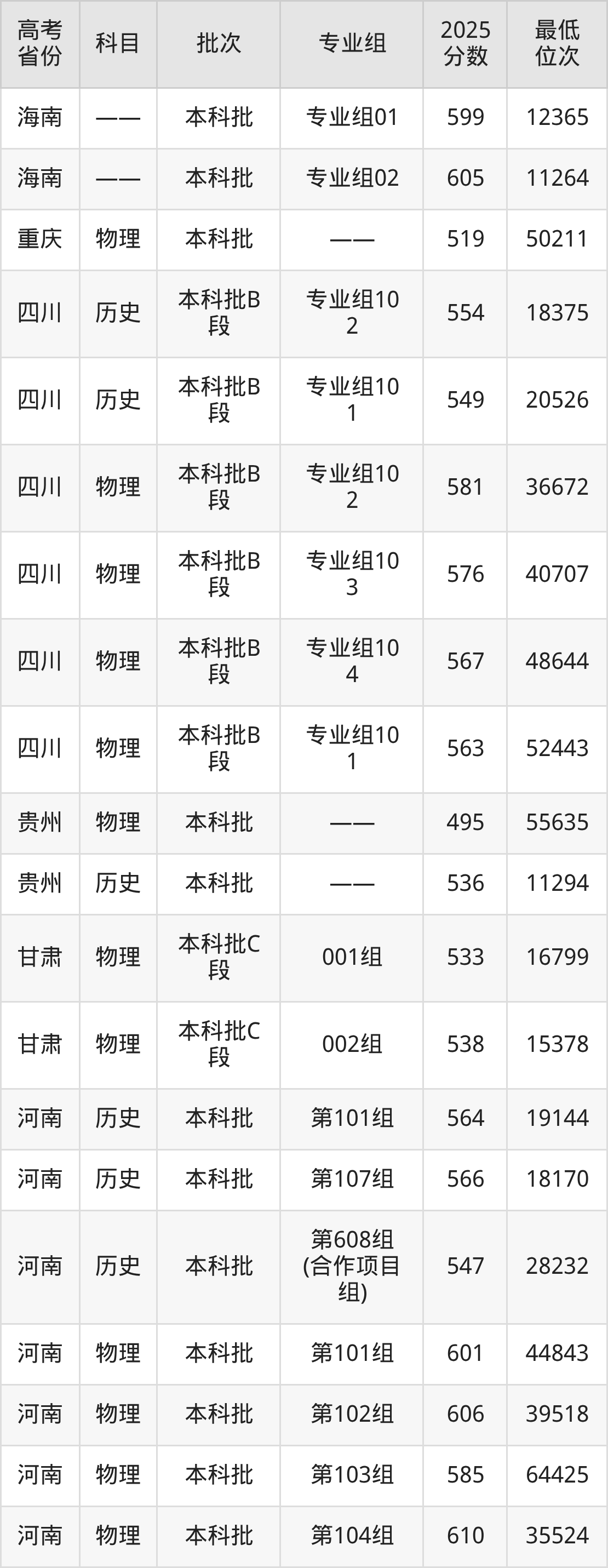 2026届高考生请重点参考下表,若你的高考成绩超过了南昌航空大学往年在你省的最低录取分及位次,那么2026年被录取的概率也会比较高: