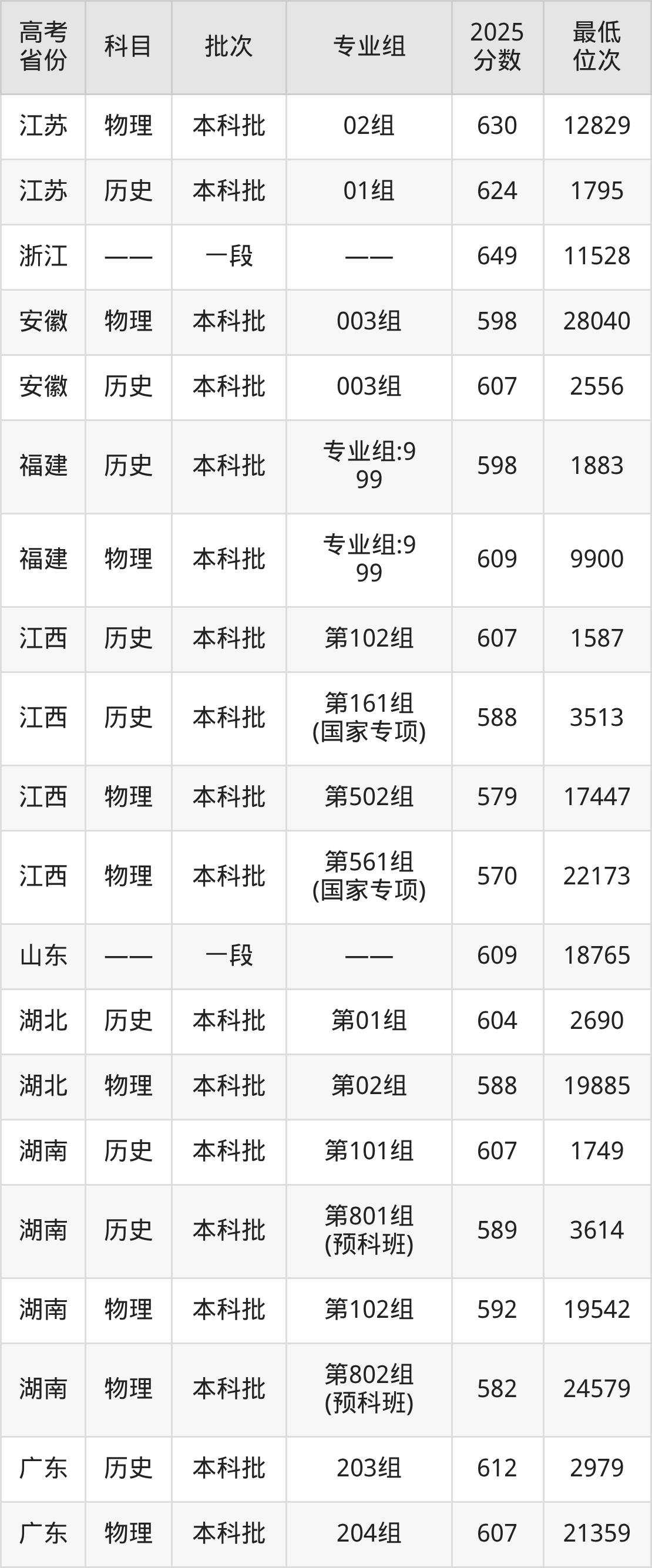 2026届高考生请重点参考下表,若你的高考成绩超过了华东政法大学往年在你省的最低录取分及位次,那么2026年被录取的概率也会比较高: