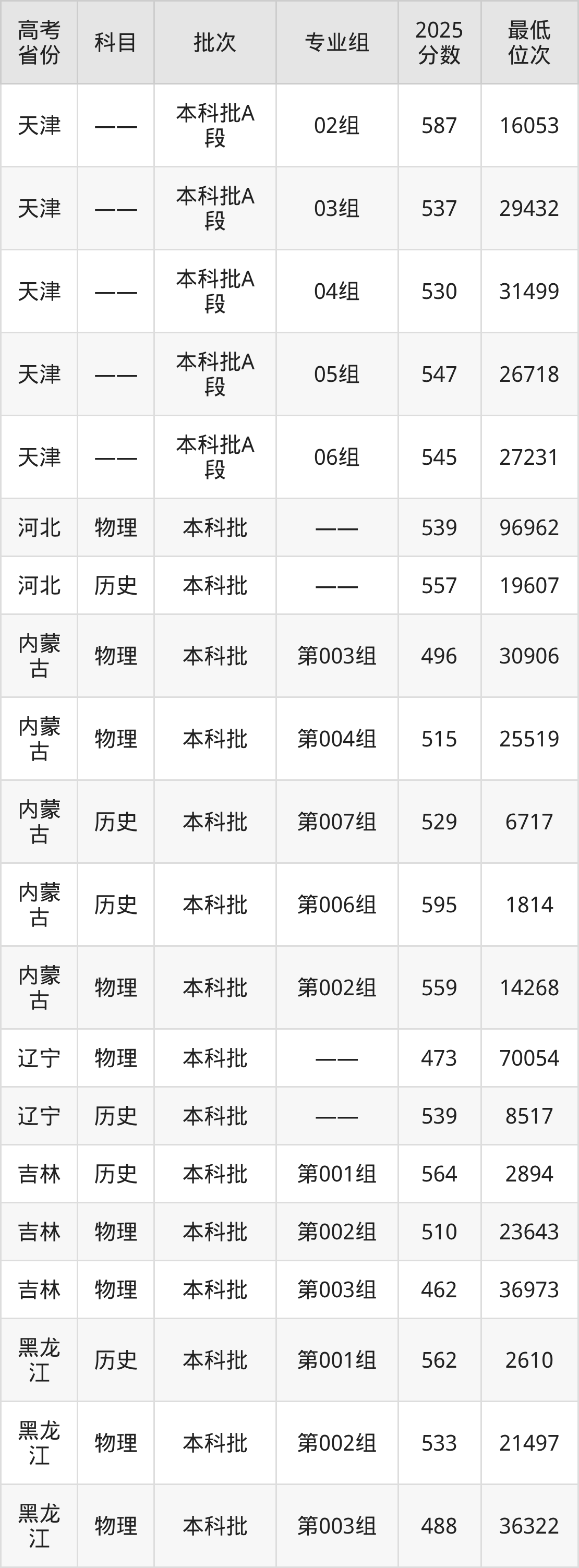 湖北中医药大学2025年在全国各省的最低分是435分,在湖北历史类招生的最低分是535分、最低位次是17868位,在湖北物理类招生的最低分是480分、最低位次是104222位,在天津招生的最低分是530分、最低位次是31499位。