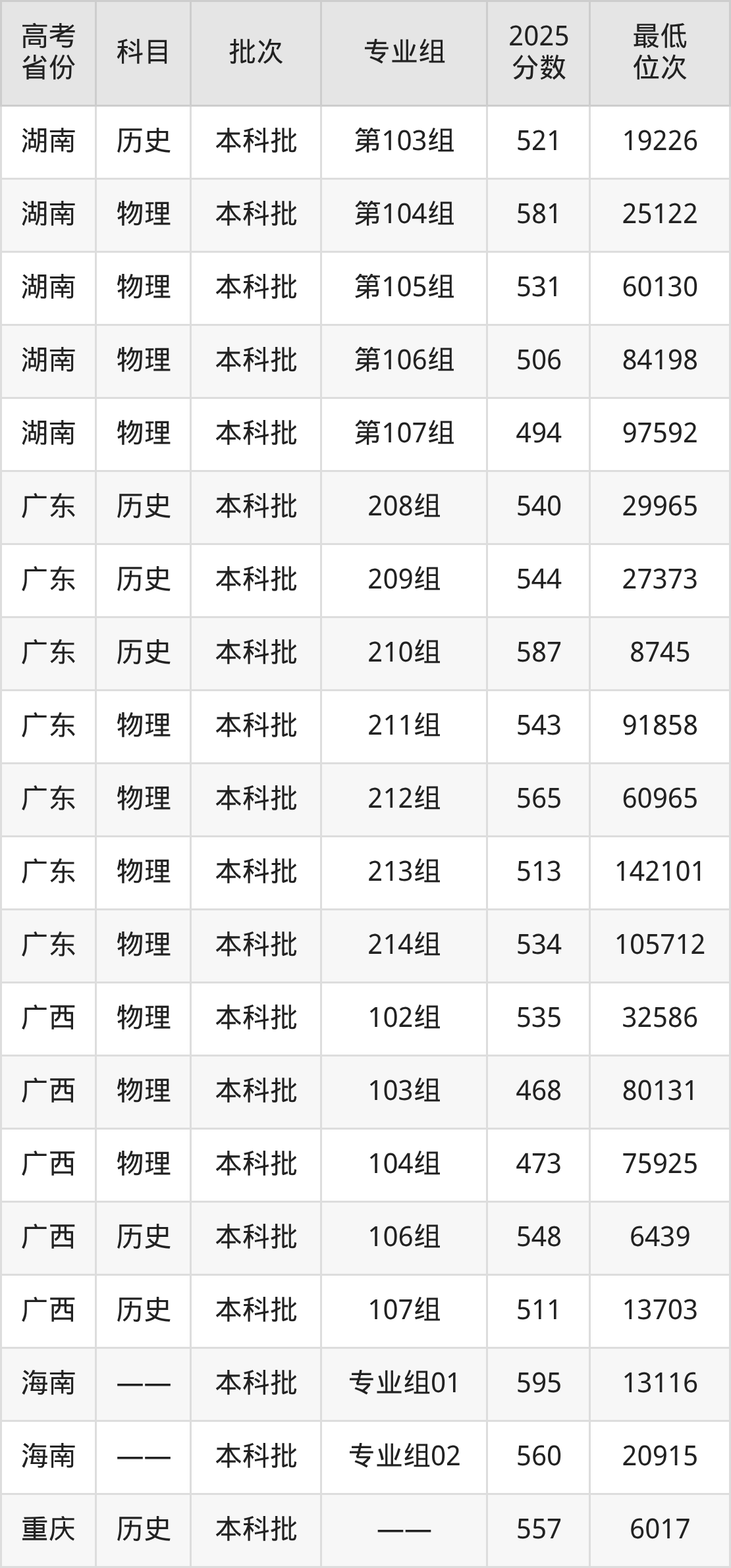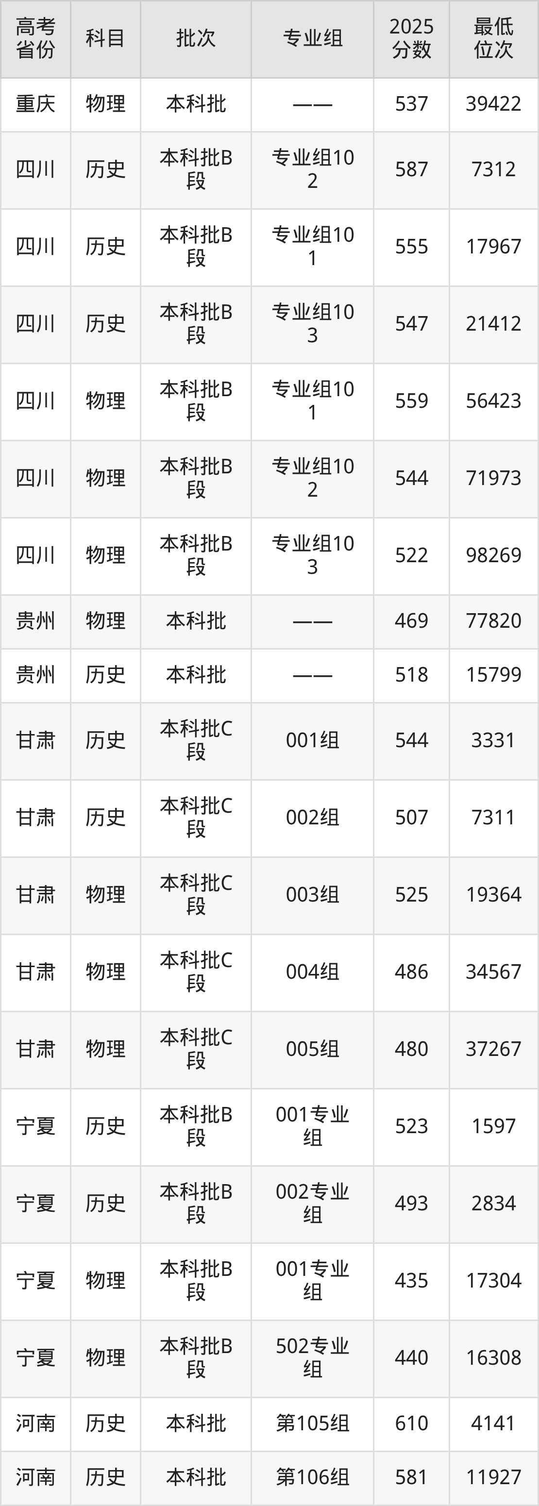 | 学校 代码 | 科目 | 2025年 专业组 | 专业 代码 | 2025年 专业名称 | 收费 标准 |