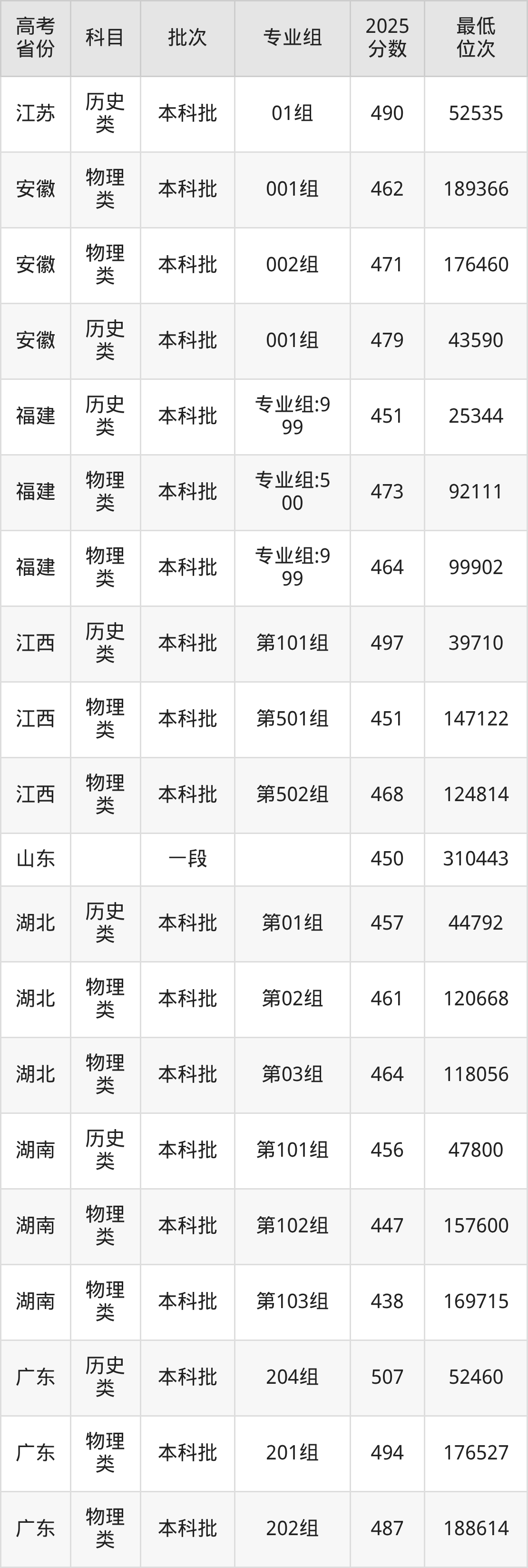 | 学校 代码 | 科目 | 2025年 专业组 | 专业 代码 | 2025年 专业名称 | 收费 标准 |