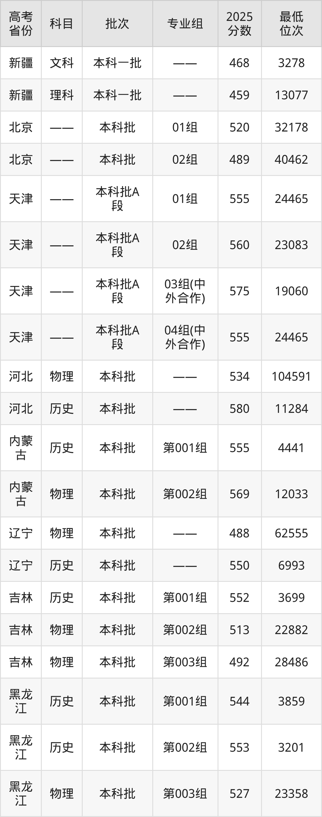 苏州科技大学2025年在全国各省的最低分是455分,在江苏物理类招生的最低分是526分、最低位次是126402位,在江苏历史类招生的最低分是548分、最低位次是24649位,在新疆文科招生的最低分是468分、最低位次是3278位。