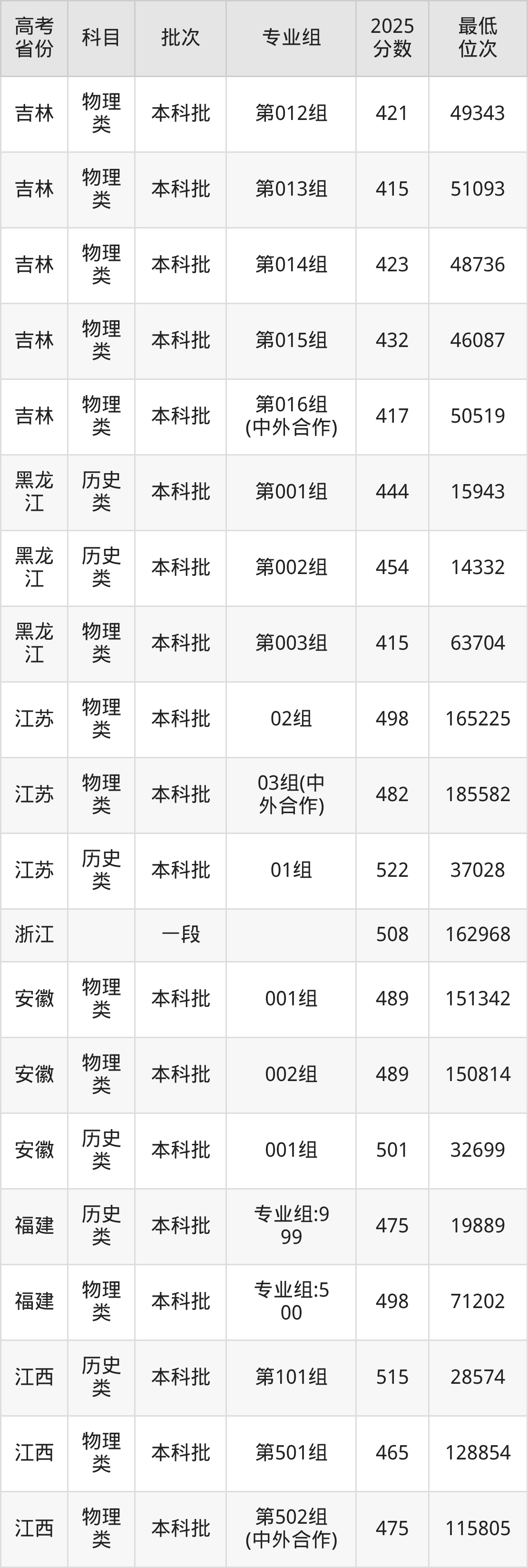 2026届高考生请重点参考下表,若你的高考成绩超过了吉林工程技术师范学院往年在你省的最低录取分及位次,那么2026年被录取的概率也会比较高: