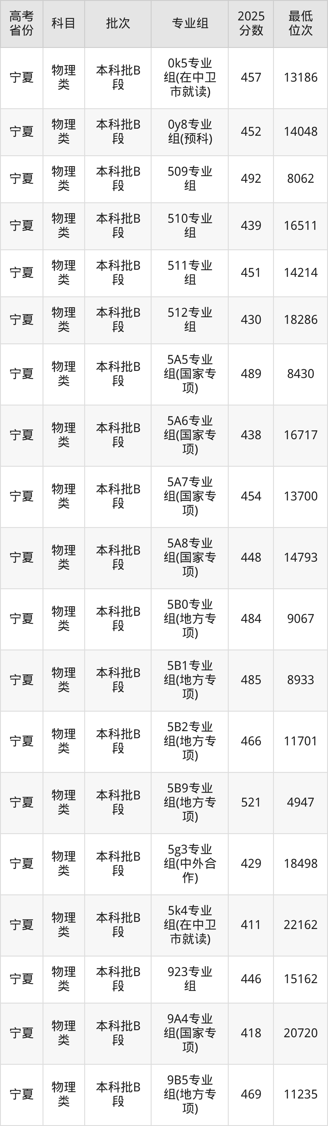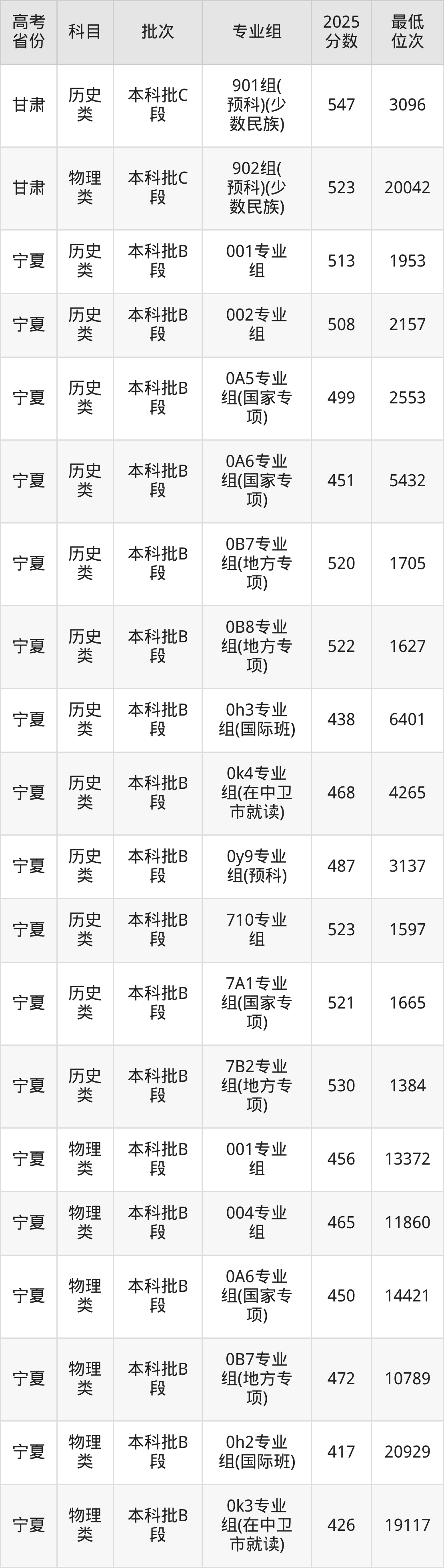 2026届高考生请重点参考下表,若你的高考成绩超过了宁夏大学往年在你省的最低录取分及位次,那么2026年被录取的概率也会比较高:
