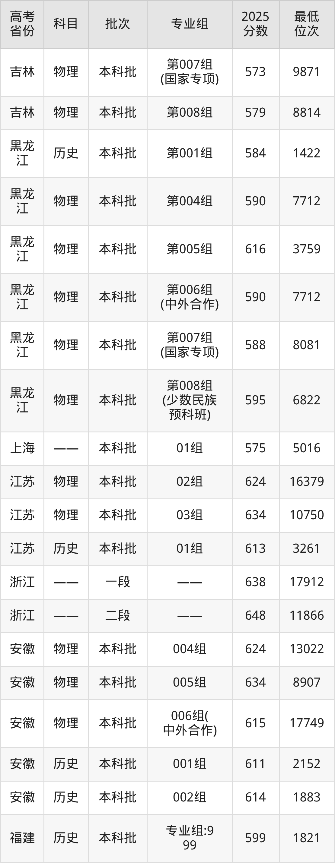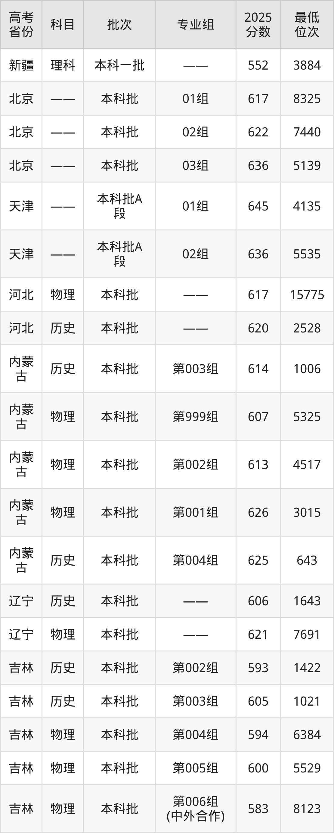 2026届高考生请重点参考下表,若你的高考成绩超过了东北大学往年在你省的最低录取分及位次,那么2026年被录取的概率也会比较高: