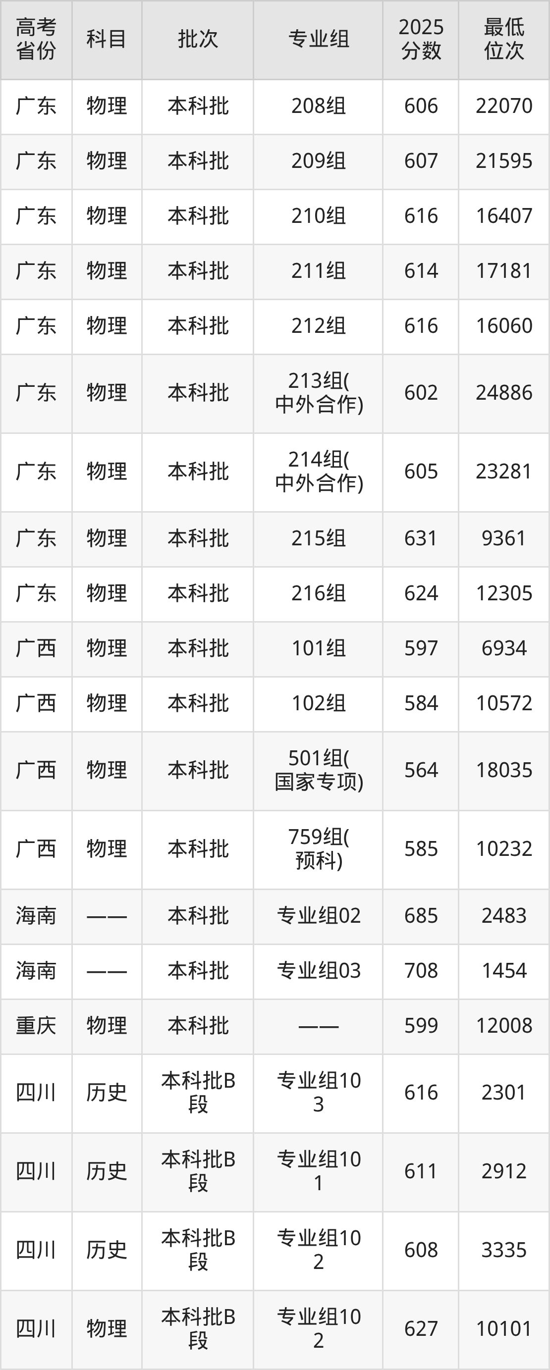 东北大学2025年在全国各省的最低分是512分,在辽宁历史类招生的最低分是606分、最低位次是1643位,在辽宁物理类招生的最低分是621分、最低位次是7691位,在新疆理科招生的最低分是552分、最低位次是3884位。