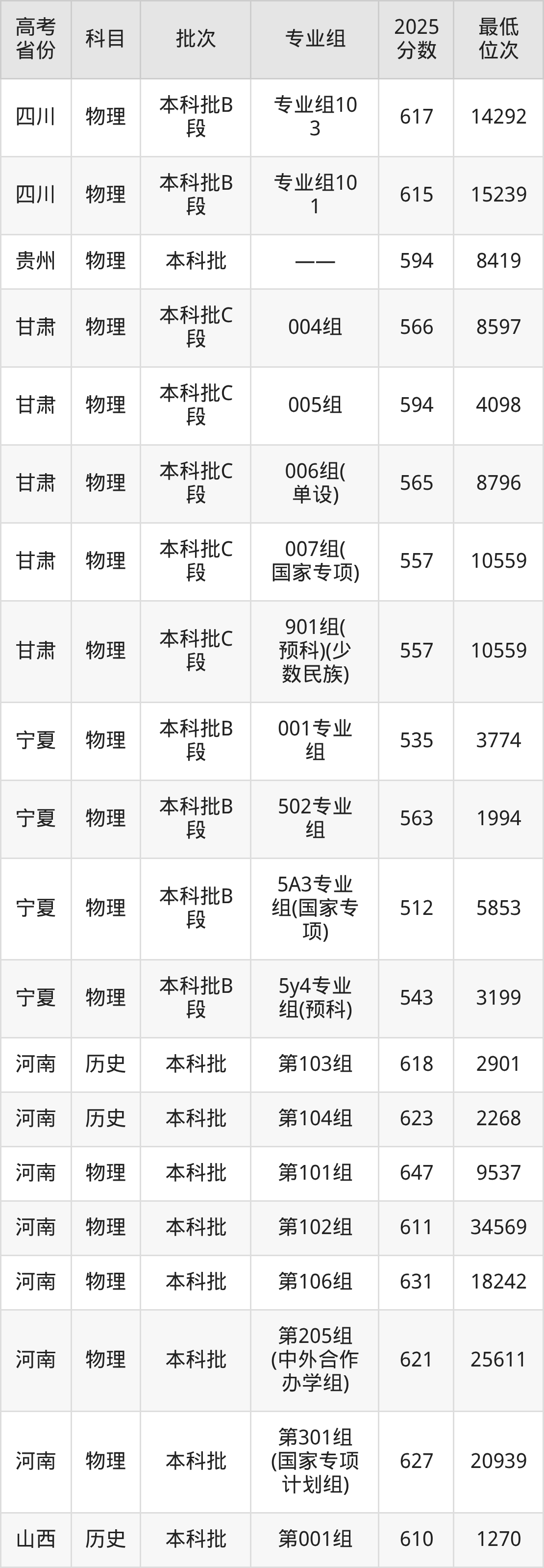 | 0145 | 物理 | 1G | 工科试验班 | 6240 |