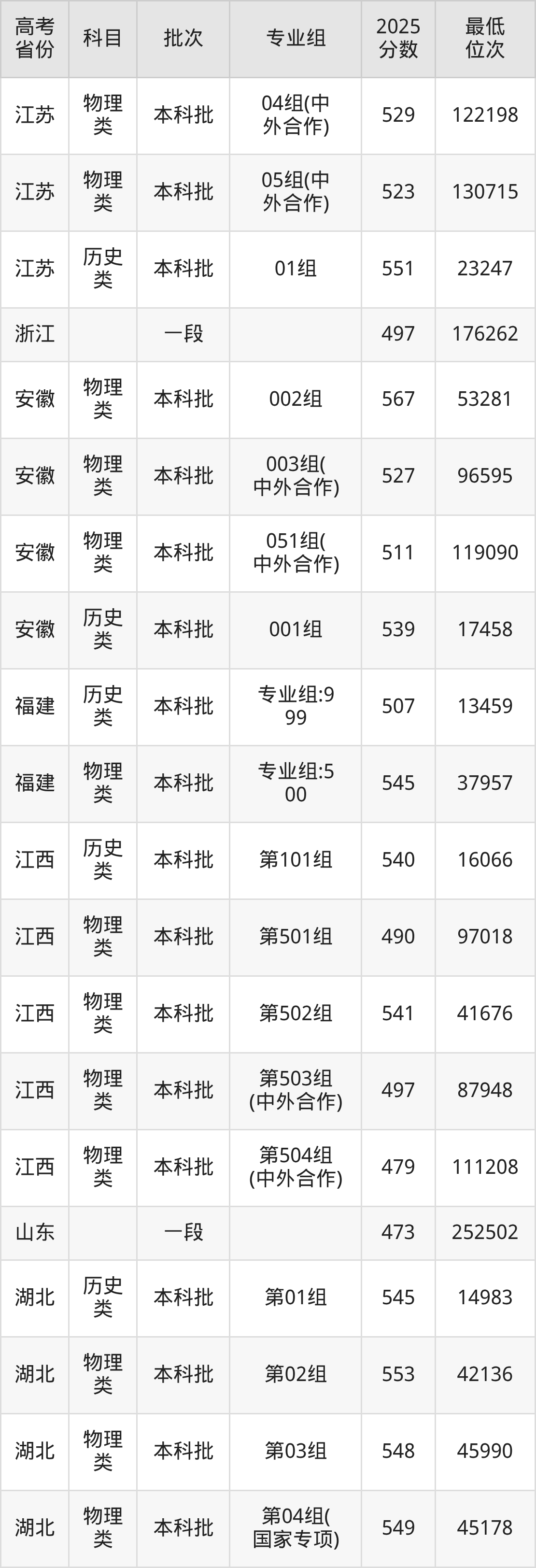 | 学校 代码 | 科目 | 专业 代码 | 2025年 专业名称 | 收费 标准 |