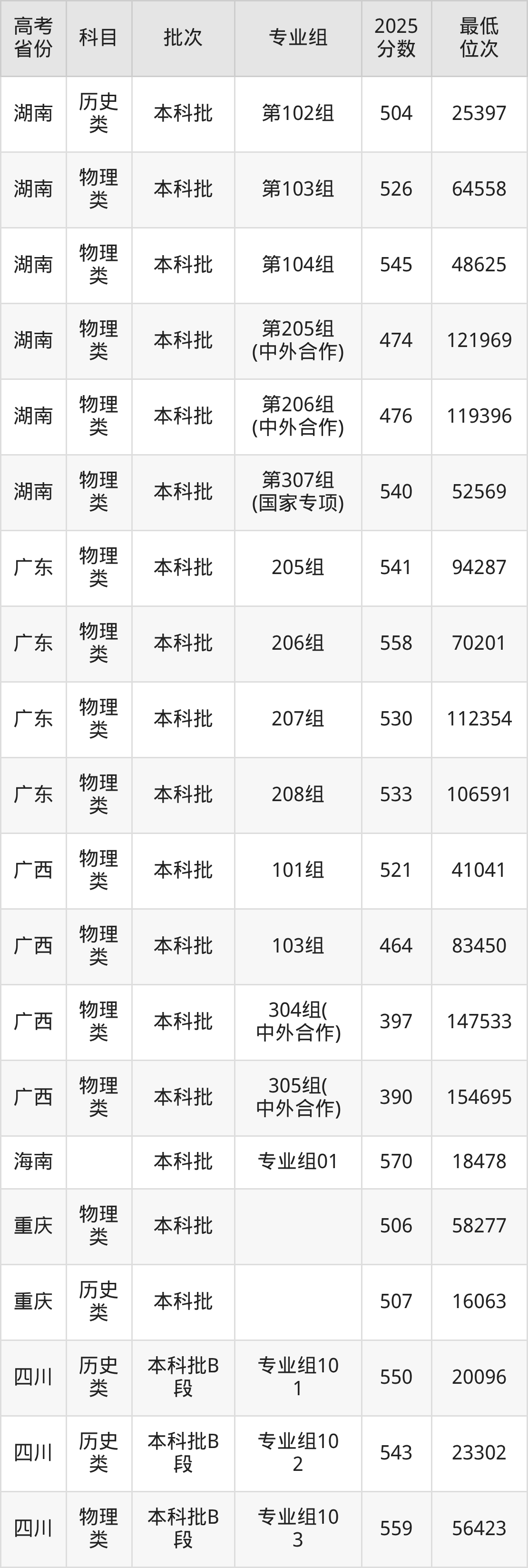 2026届高考生请重点参考下表,若你的高考成绩超过了沈阳理工大学往年在你省的最低录取分及位次,那么2026年被录取的概率也会比较高: