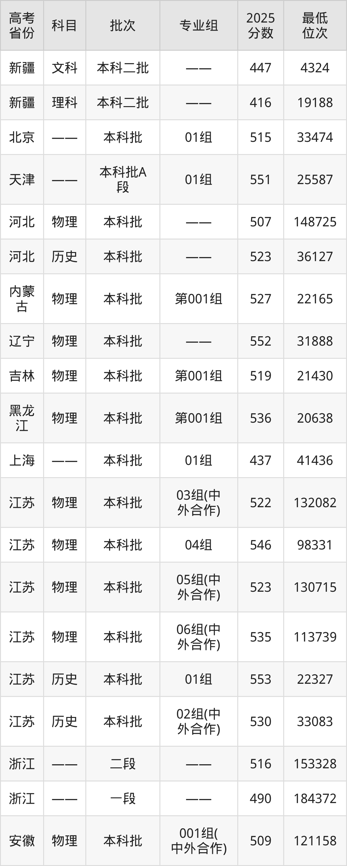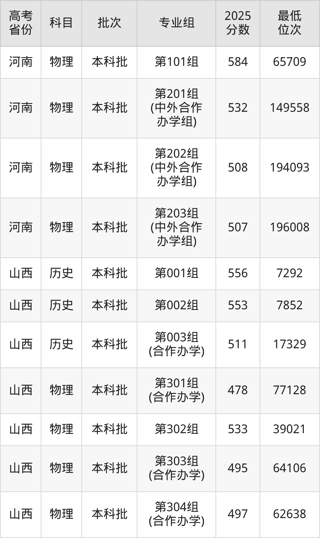 | C12510 | 物理 | 第10组 (中外合 作) | 64 | 机械设计制造 及其自动化 | 60000 |