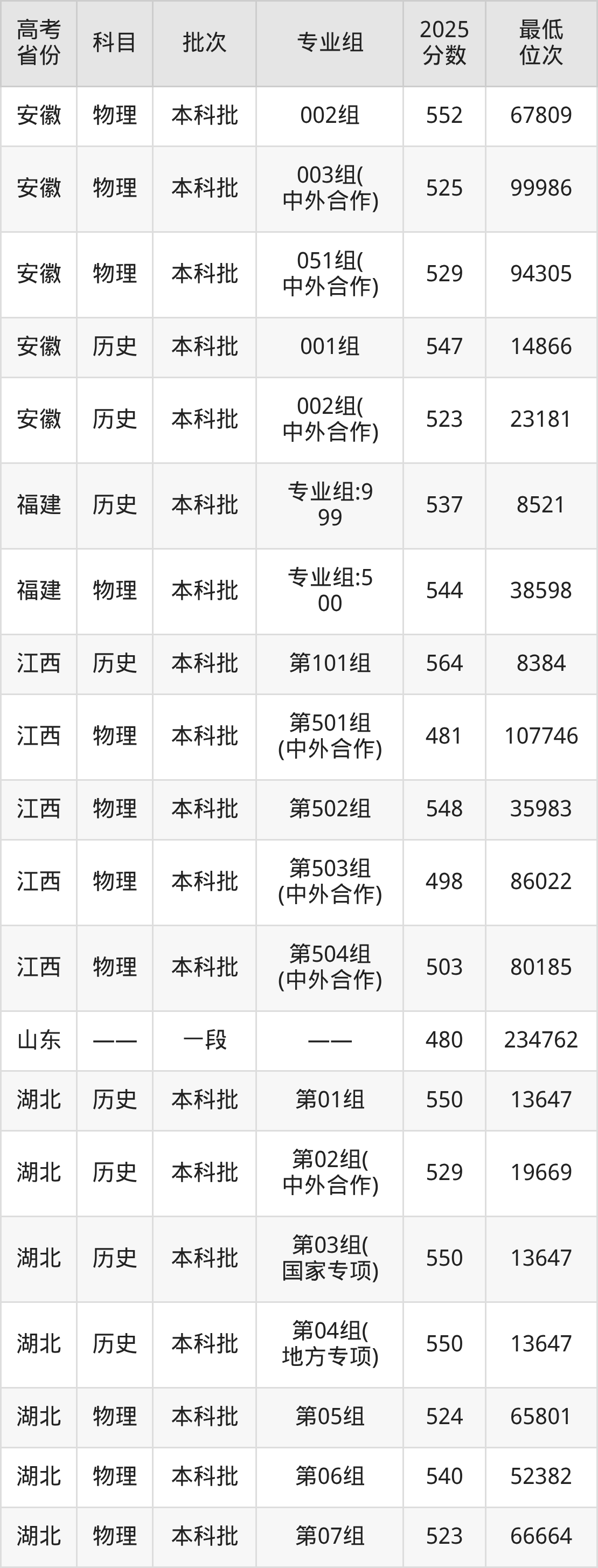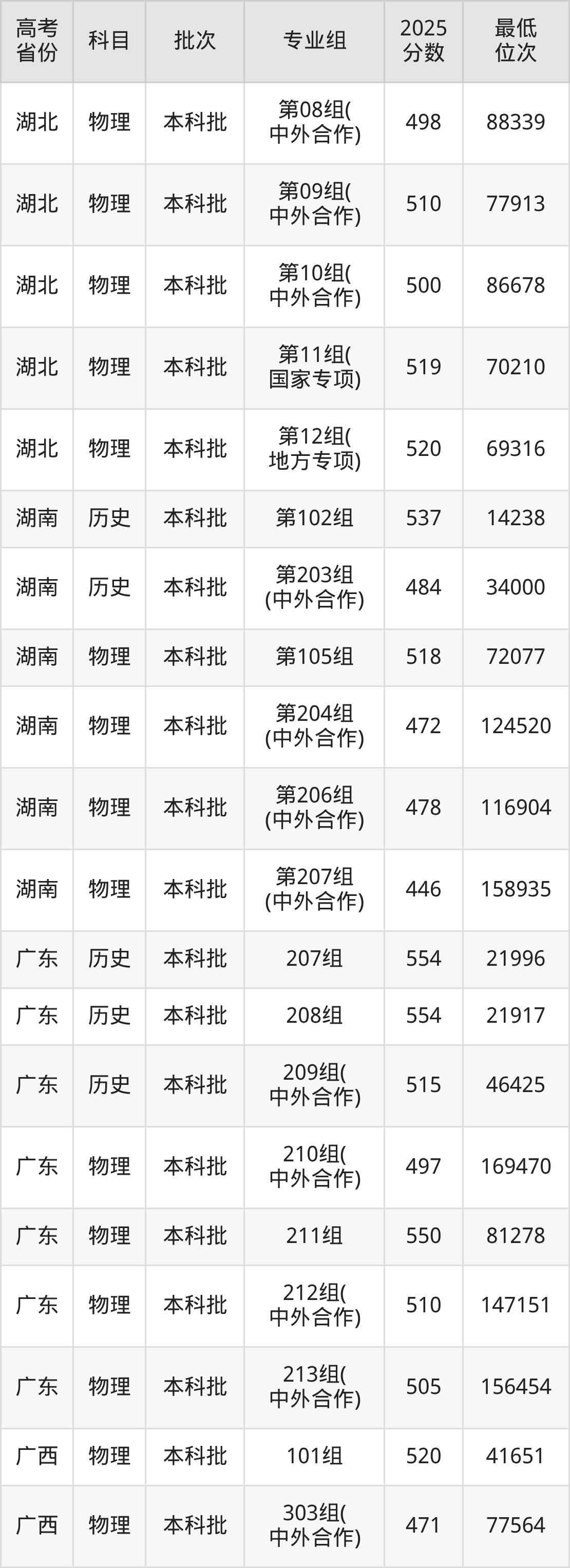 2026届高考生请重点参考下表,若你的高考成绩超过了武汉轻工大学往年在你省的最低录取分及位次,那么2026年被录取的概率也会比较高:
