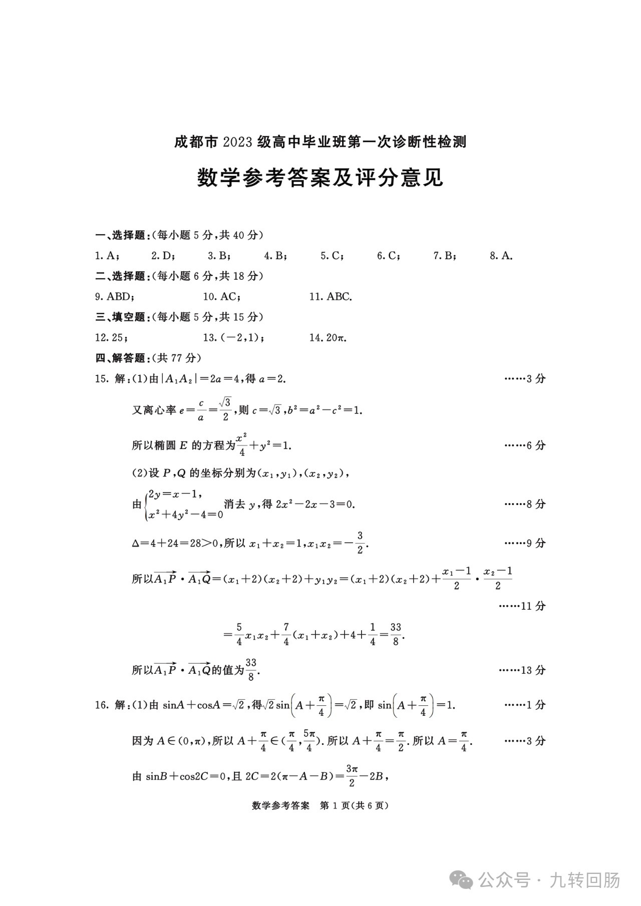 一、2026四川成都高三一诊试卷答案(持续更新中)