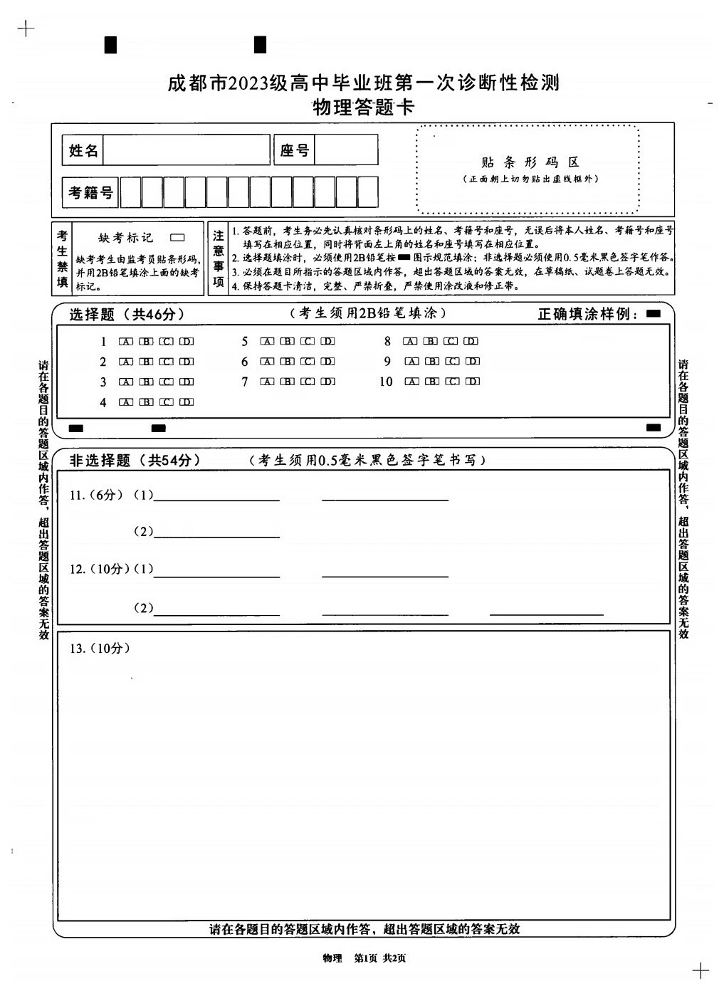 试卷与答案:物理与历史(二选一)考试将于23日上午进行。答案预计23日中午前后更新,请注意选择题的易错点和主观题的表述规范。