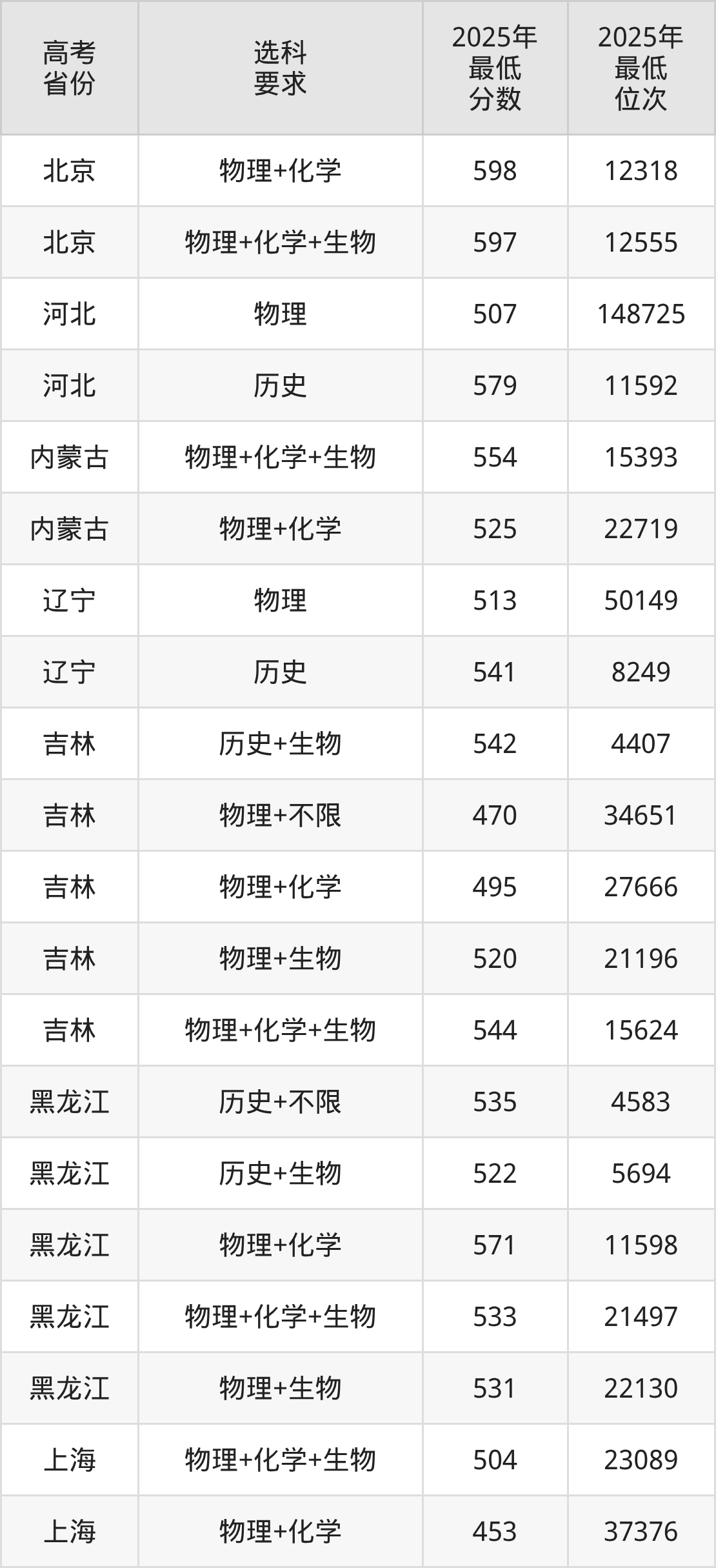 在2025年黑龙江高考物理类招生时,211收分最低的是郑州大学第003组,最低分是389分、位次是74217位。再看哈尔滨医科大学,2025年在黑龙江物理类的最低录取分数线是531分,最低位次是22130位。