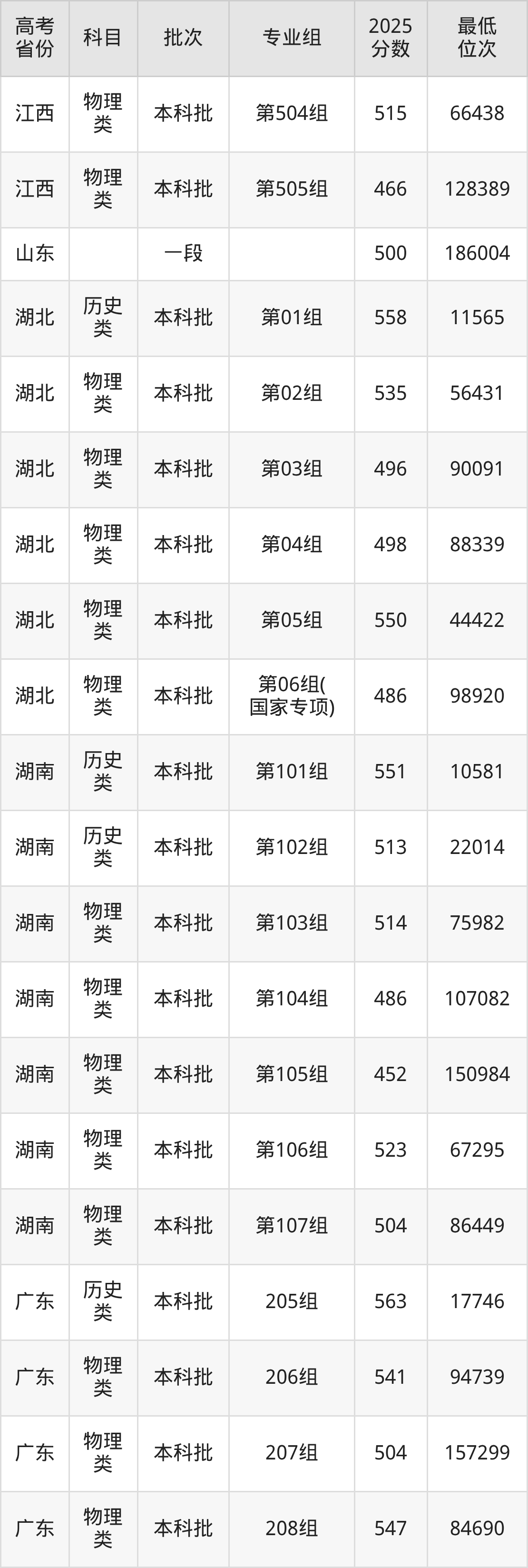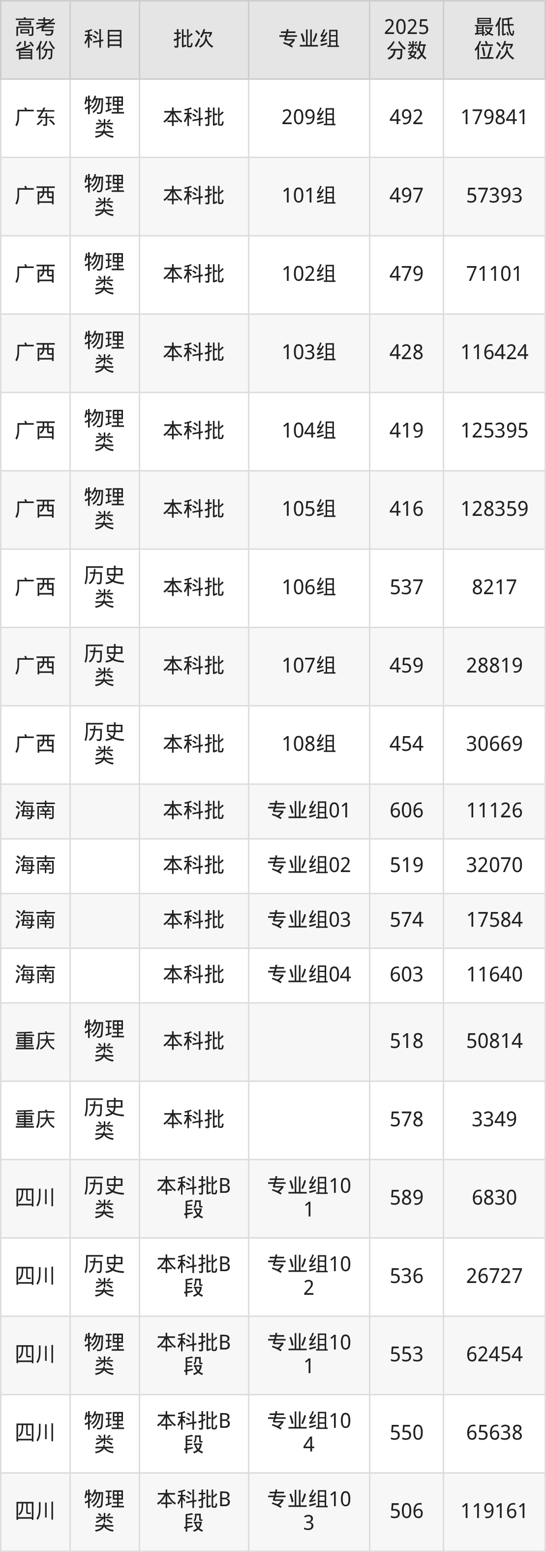 | 学校 代码 | 科目 | 2025年 专业组 | 专业 代码 | 2025年 专业名称 | 收费 标准 |