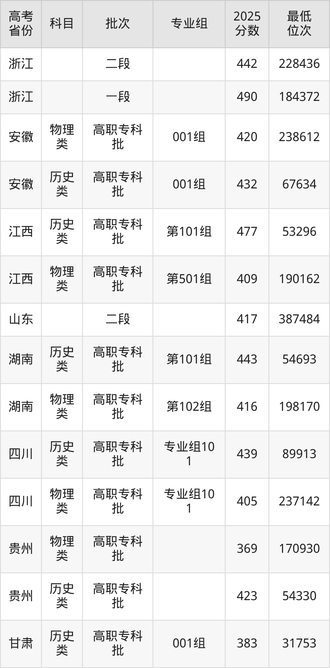 2026届高考生请重点参考下表,若你的高考成绩超过了江苏旅游职业学院往年在你省的最低录取分及位次,那么2026年被录取的概率也会比较高: