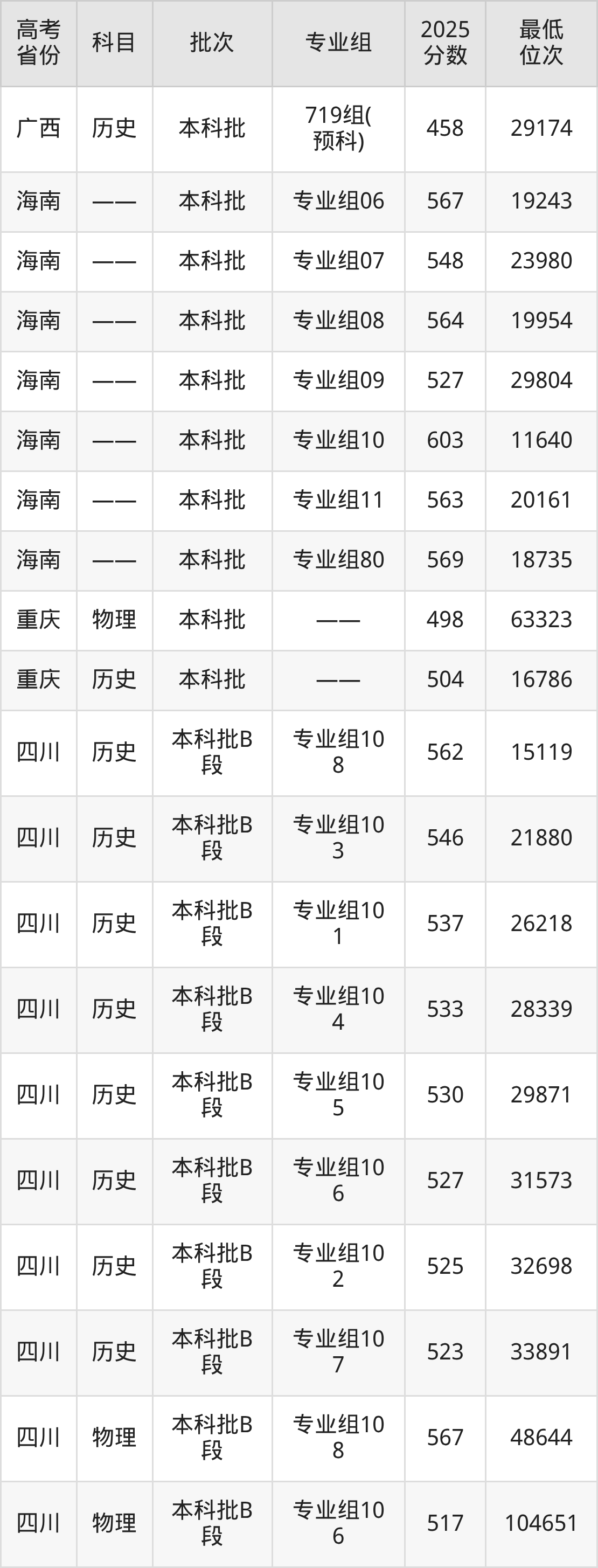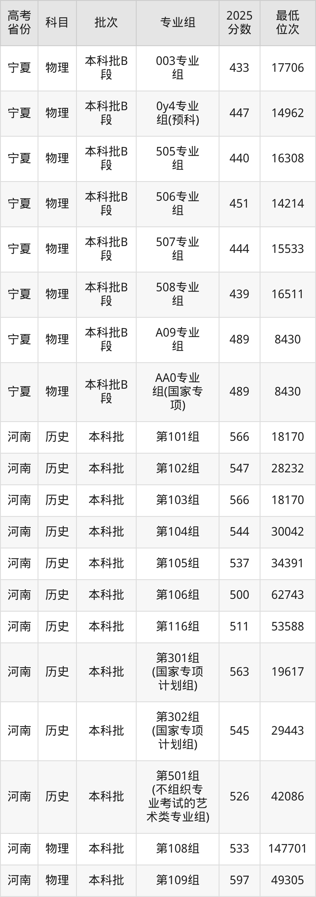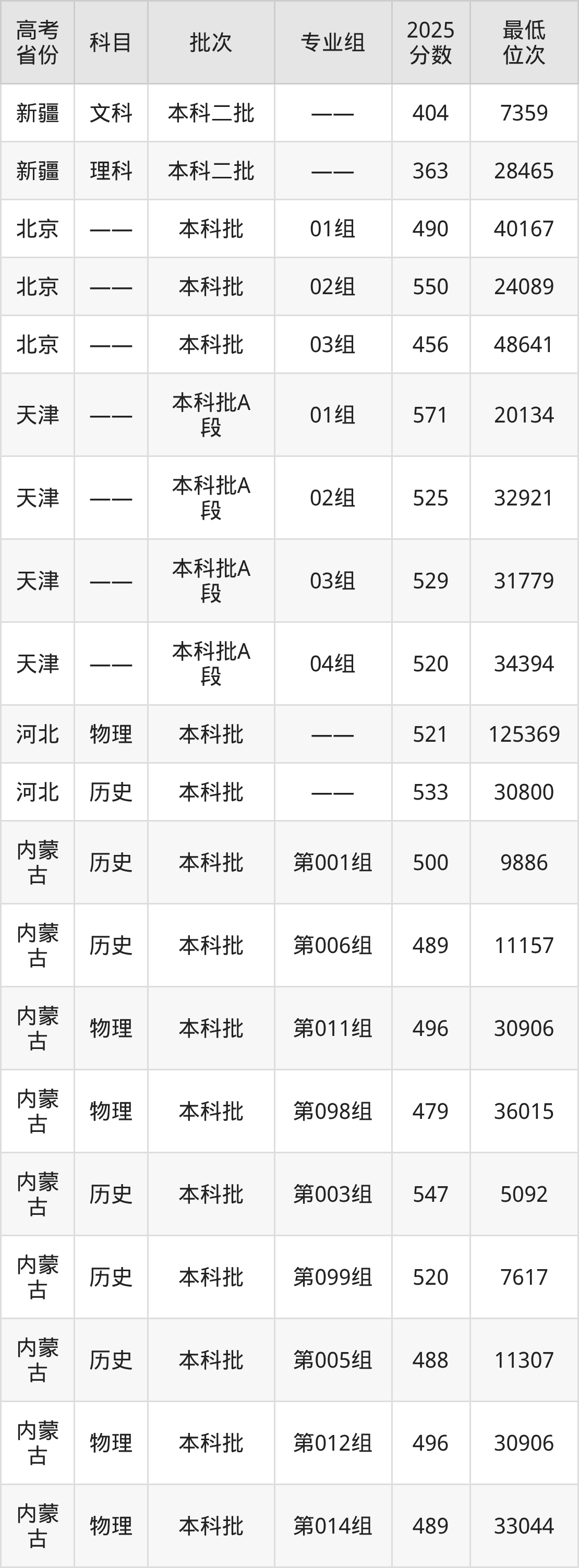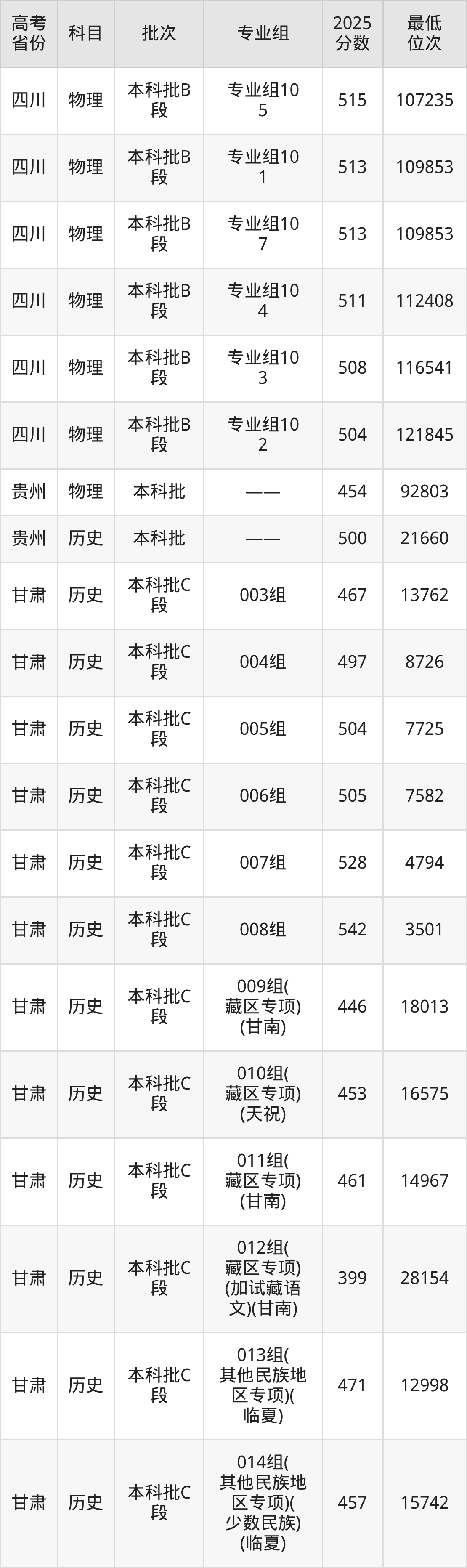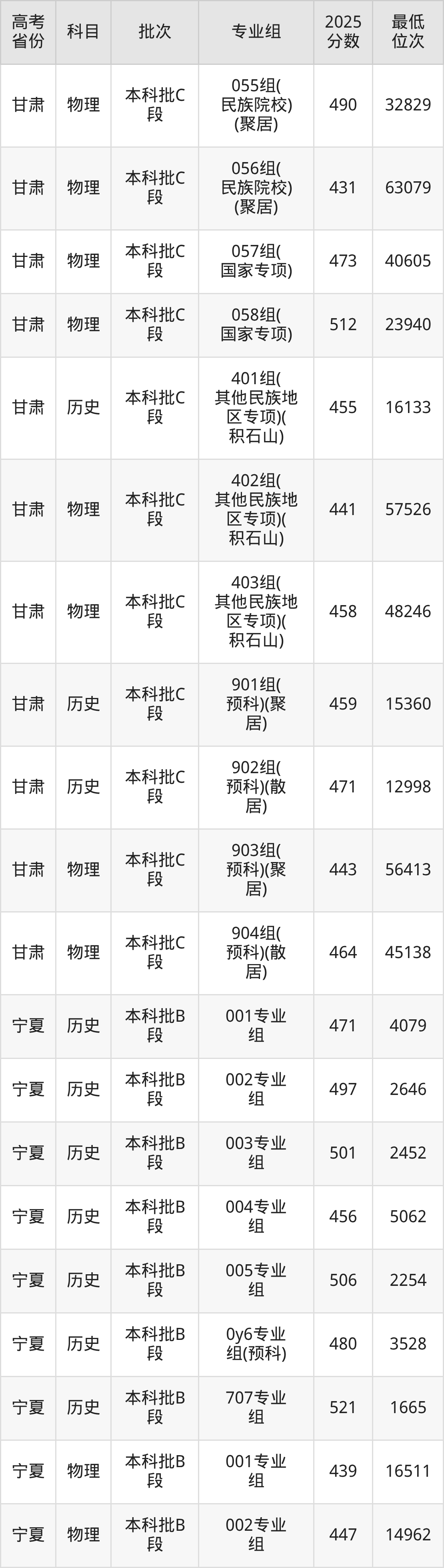 2026届高考生请重点参考下表,若你的高考成绩超过了西北民族大学往年在你省的最低录取分及位次,那么2026年被录取的概率也会比较高: