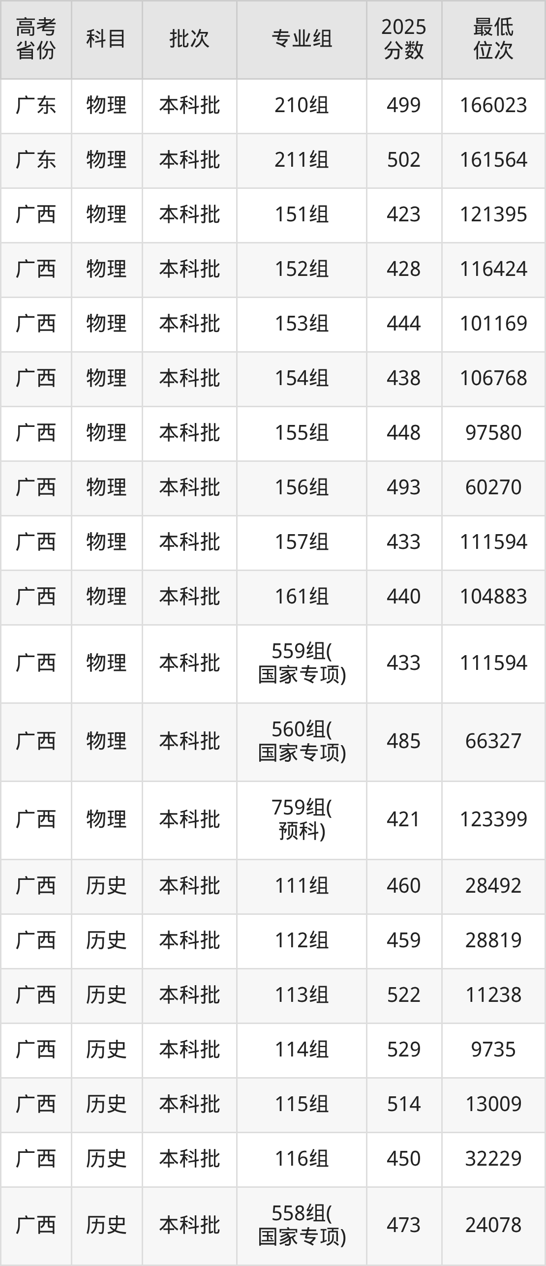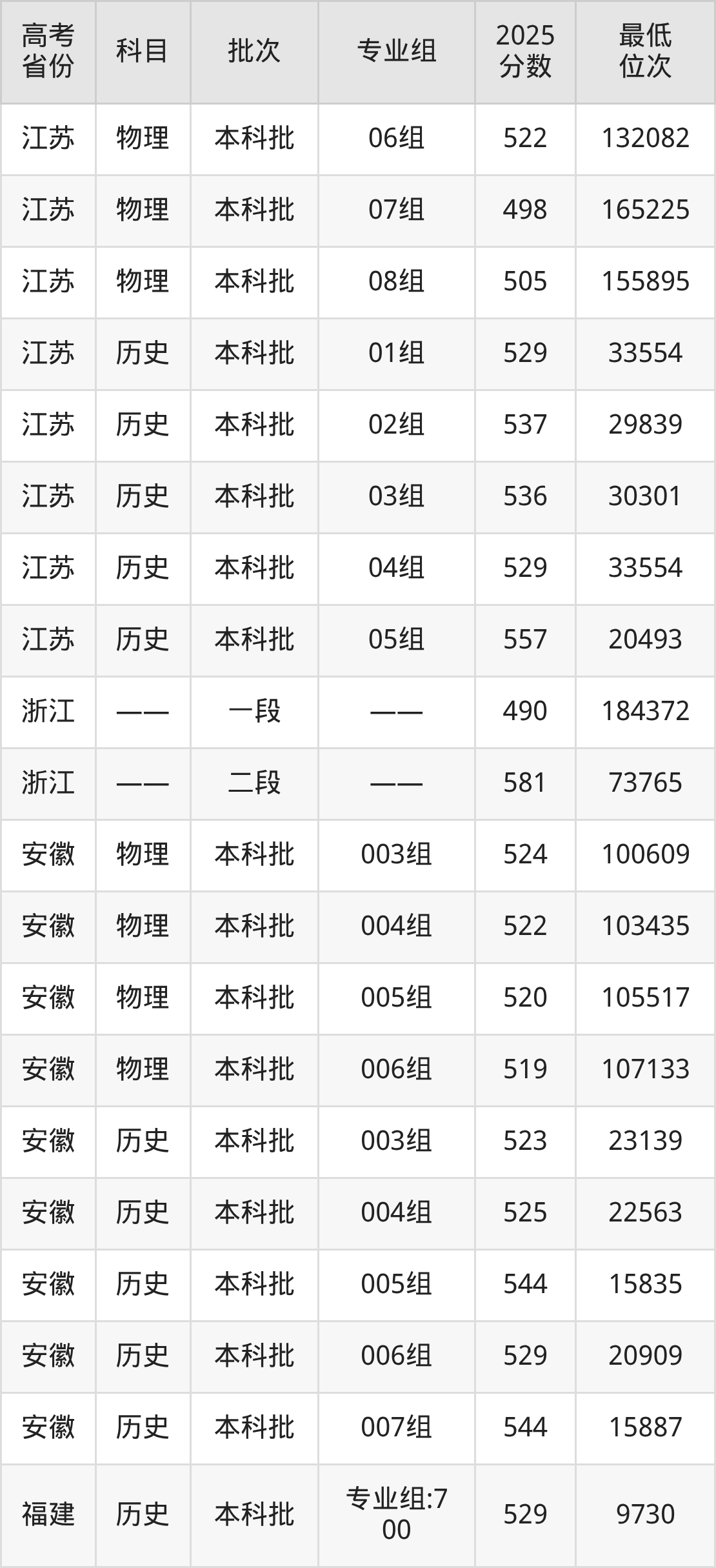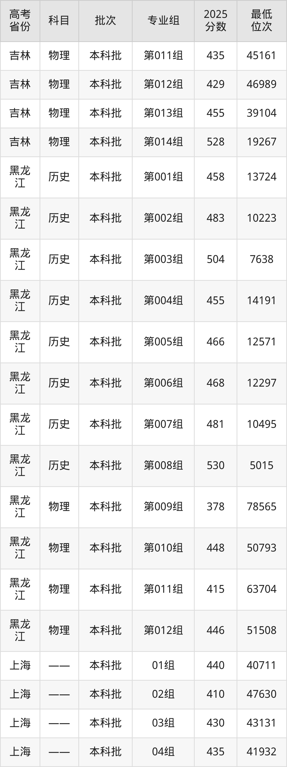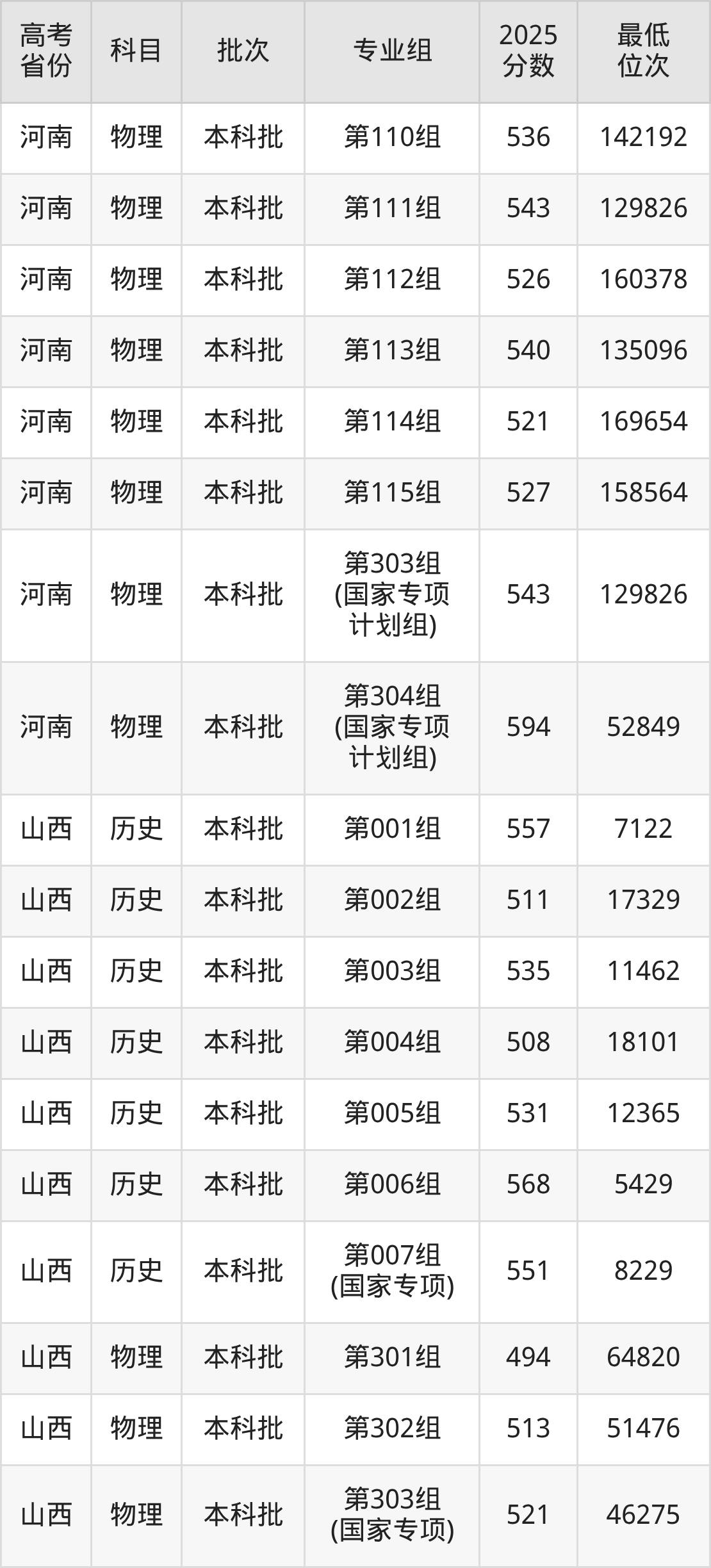 | 学校 代码 | 科目 | 2025年 专业组 | 专业 代码 | 2025年 专业名称 | 收费 标准 |