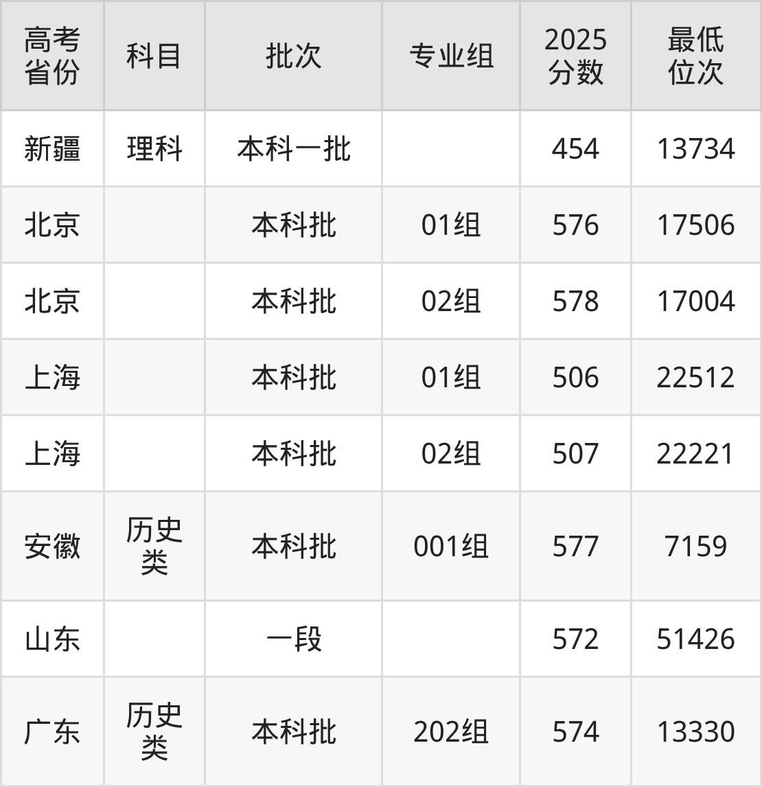 上海音乐学院2025年在全国各省的最低分是454分,在上海招生的最低分是506分、最低位次是22512位,在新疆理科招生的最低分是454分、最低位次是13734位,在北京招生的最低分是576分、最低位次是17506位。